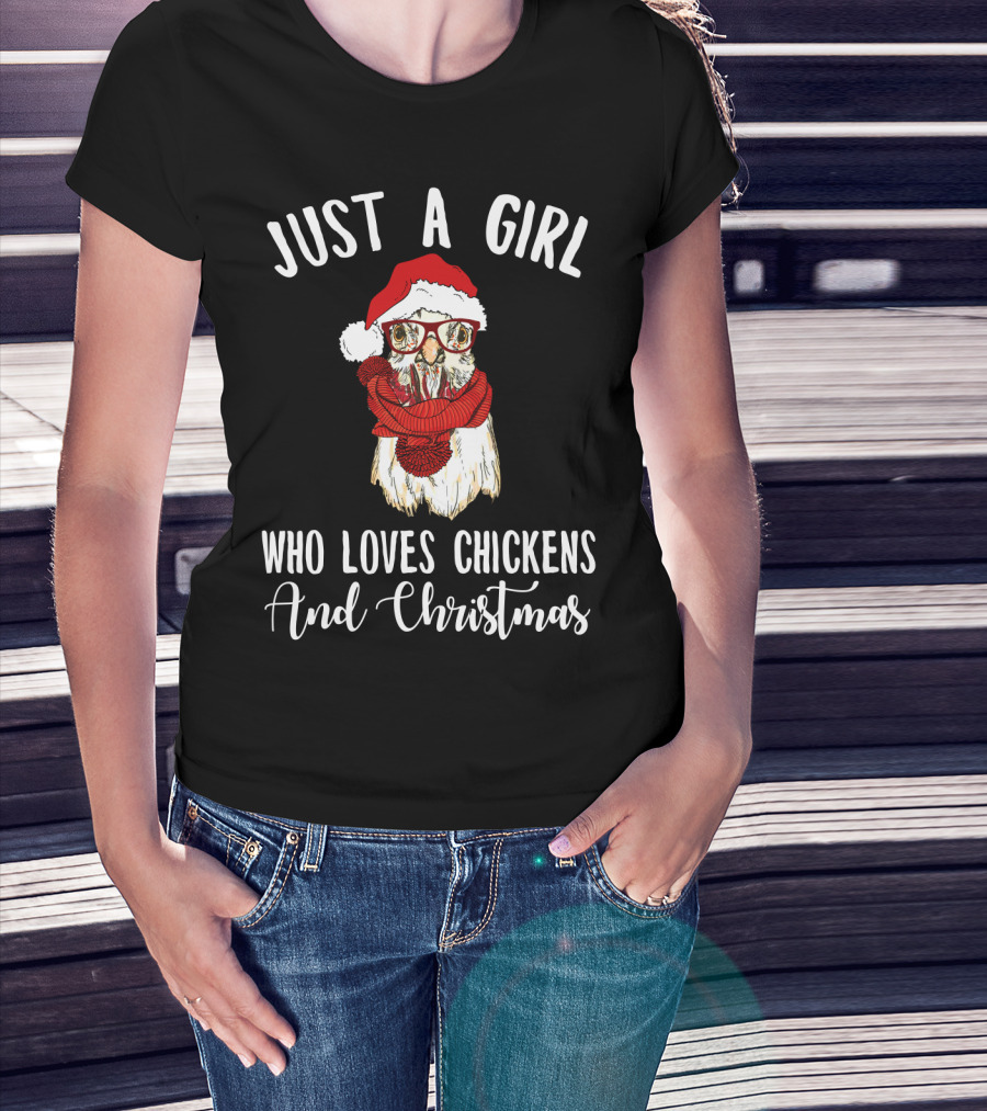 Just A Girl Who Loves Chickens And Christmas Santa Hat Glasses Scarf T-Shirt