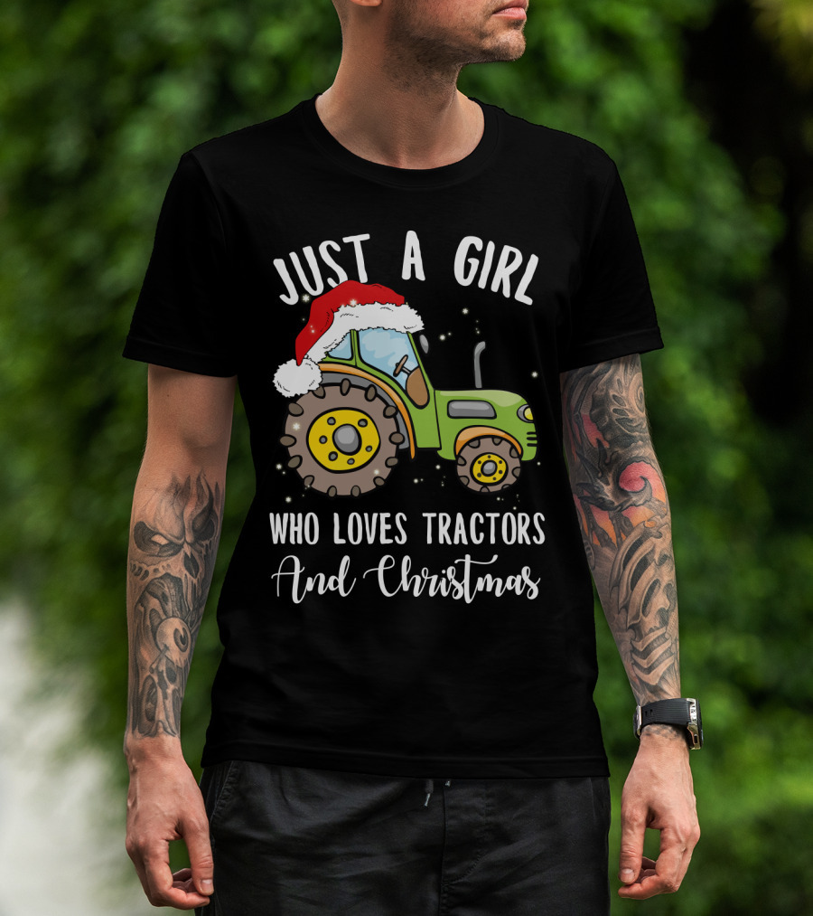 Just A Girl Who Loves Tractors And Christmas With Santa Hat T-Shirt