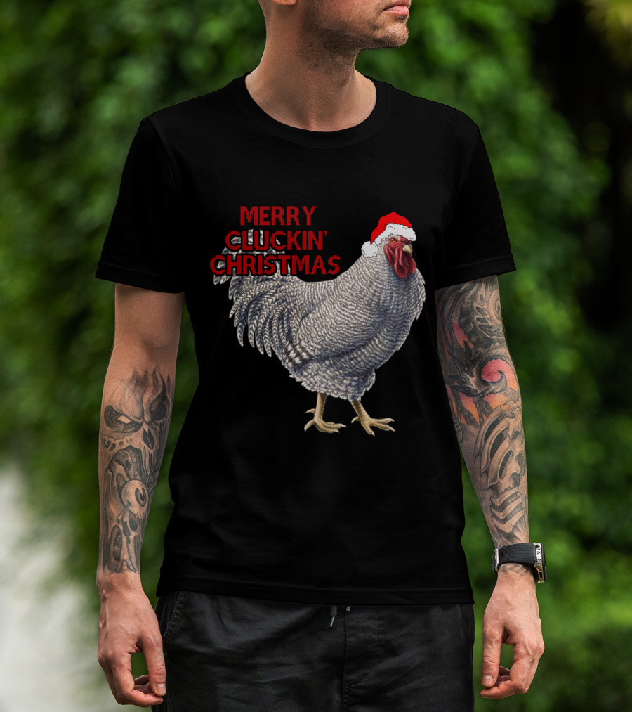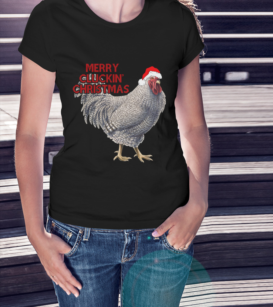 Merry Cluckin' Christmas Chicken With Santa Hat T-Shirt