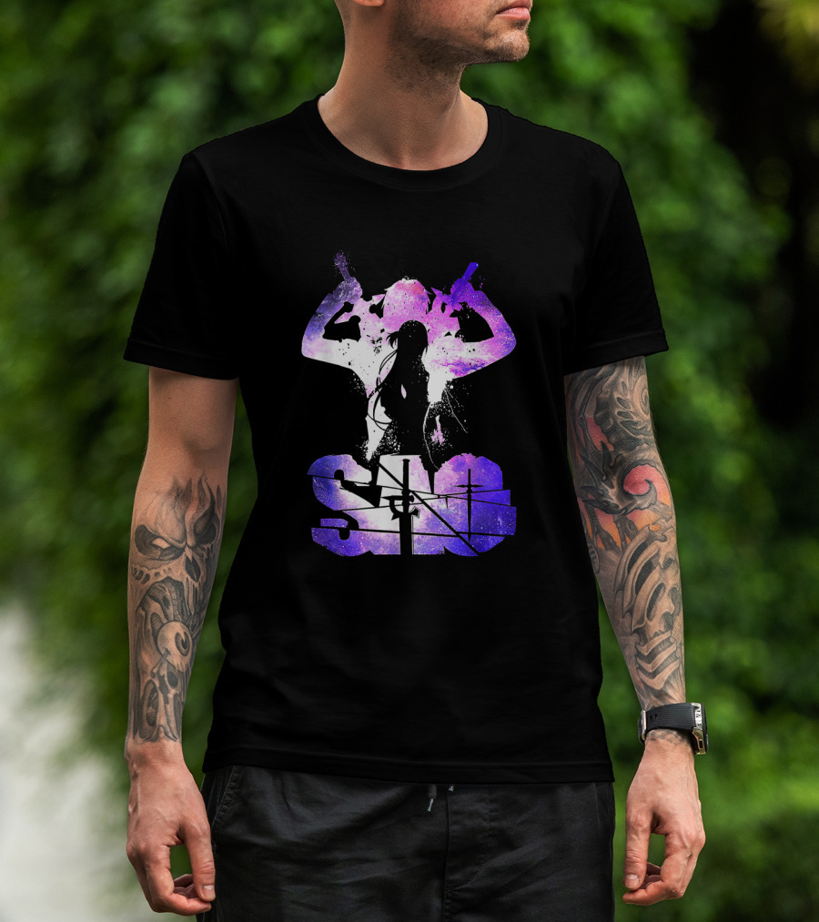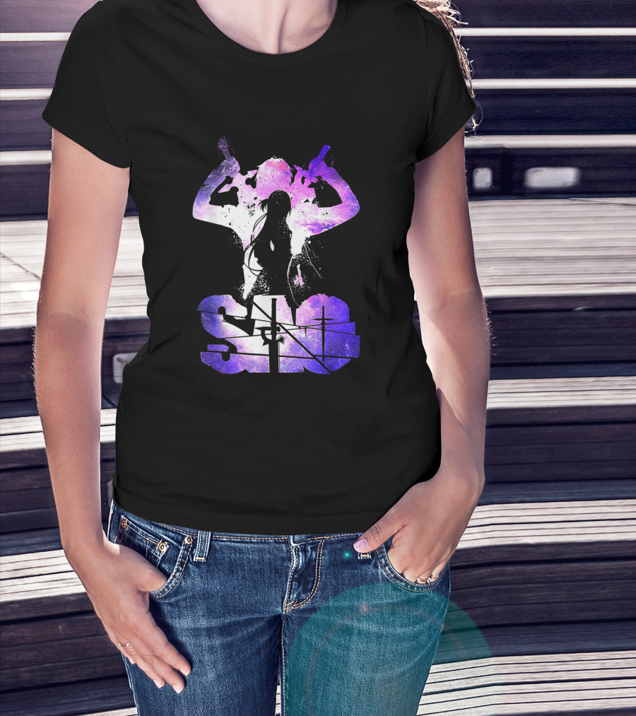 The SAO Kirito And Asuna Silhouette Galaxy T-shirt is designed for everyday wear and a consistent fit. Fabric is pre-shrunk ring-spun cotton with durable stitching. See the size chart below for exact measurements.