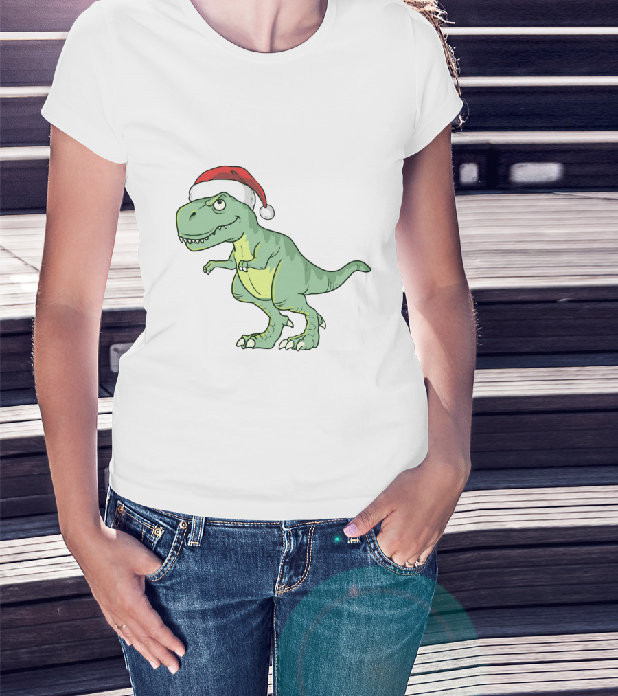 Christmas Dinosaur Wearing Santa Hat T-Shirt