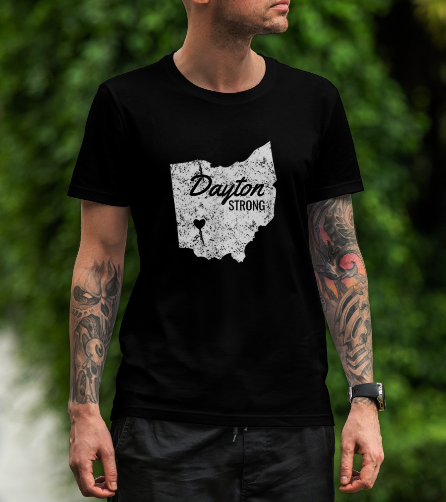 Dayton Strong Ohio Map With Heart Symbol Memorial T-Shirt