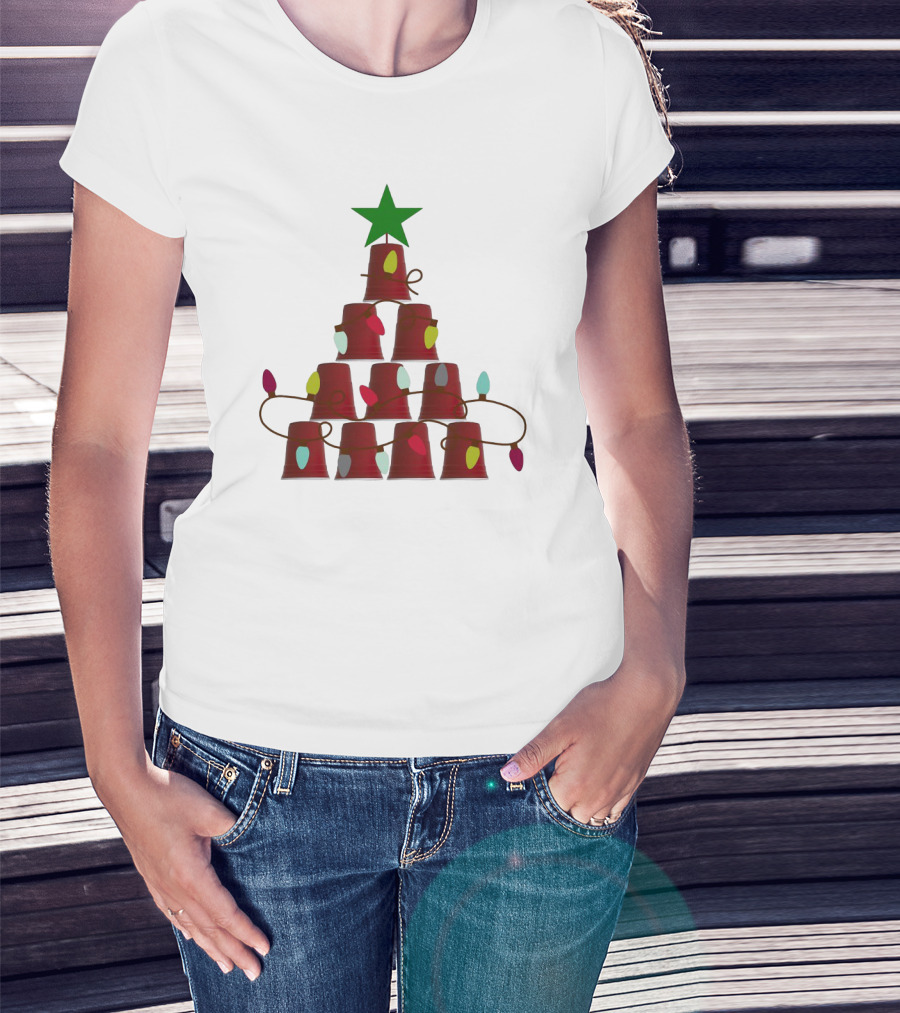 Red Cup Stacked Christmas Tree With Lights And Star Topper T-Shirt