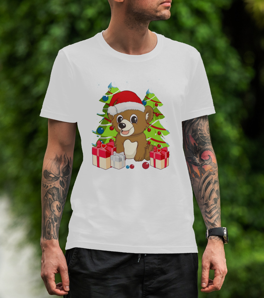 Santa Cute Bear With Christmas Trees And Presents T-Shirt