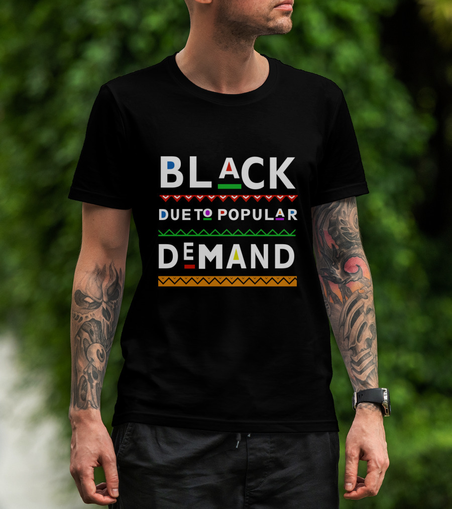Black Due To Popular Demand Afrocentric Red Green Orange Pattern Text T-Shirt