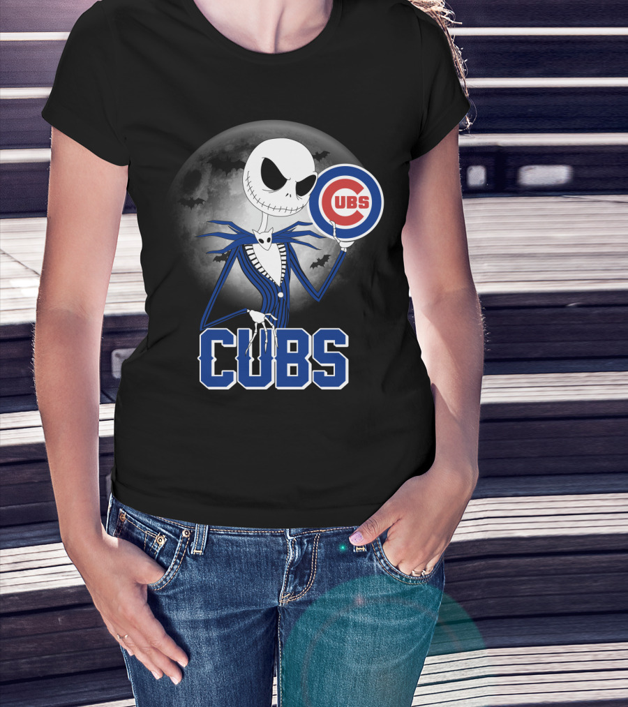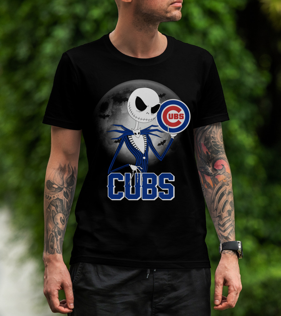 Jack Skellington Halloween Cubs Logo Fans With Full Moon And Bats T-Shirt