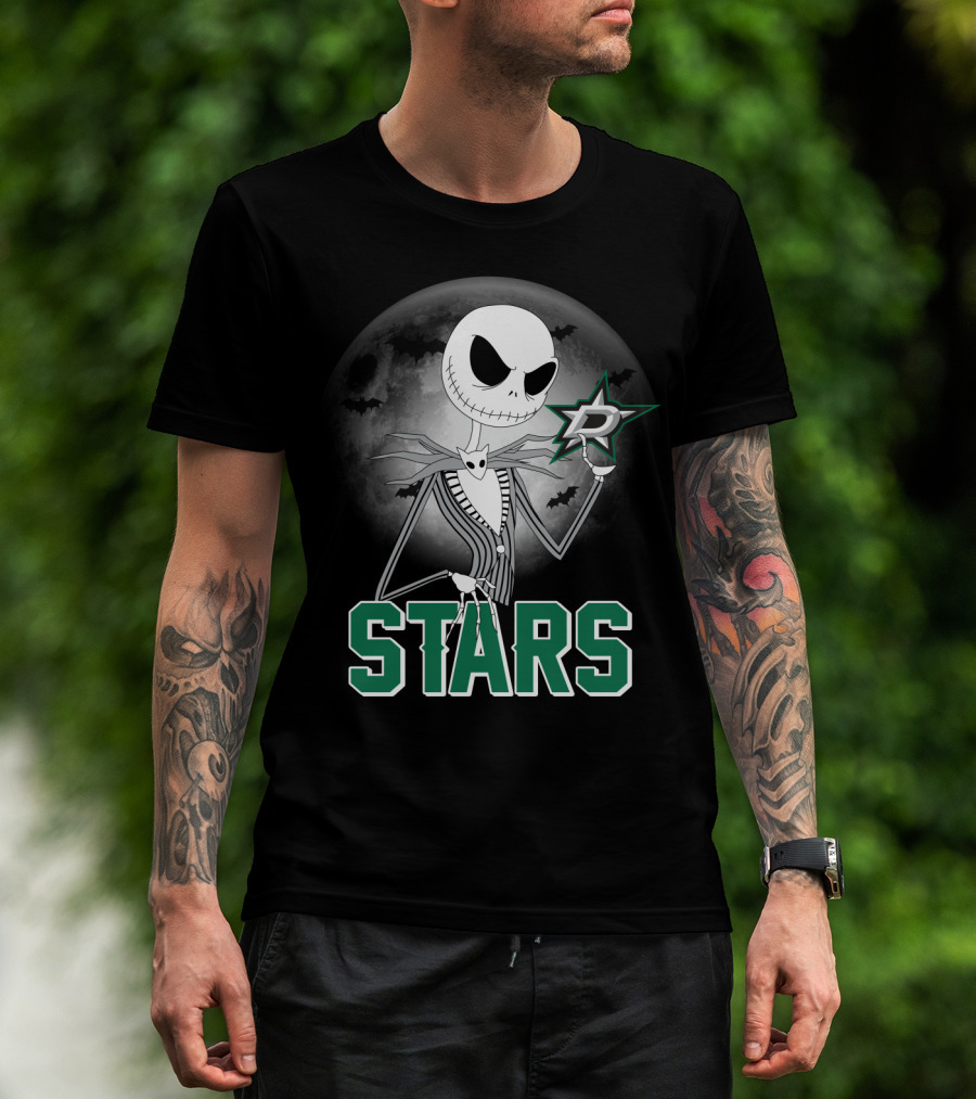 Jack Skellington Dallas Stars Halloween Moon Background Fan T-Shirt