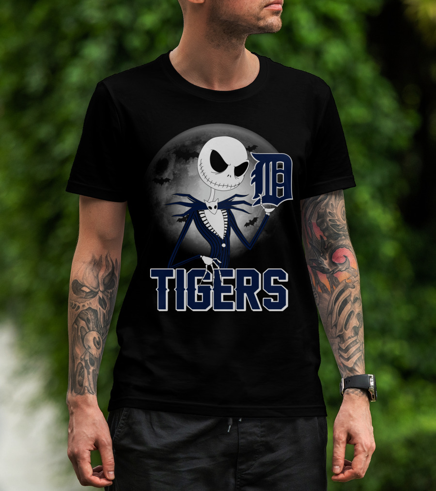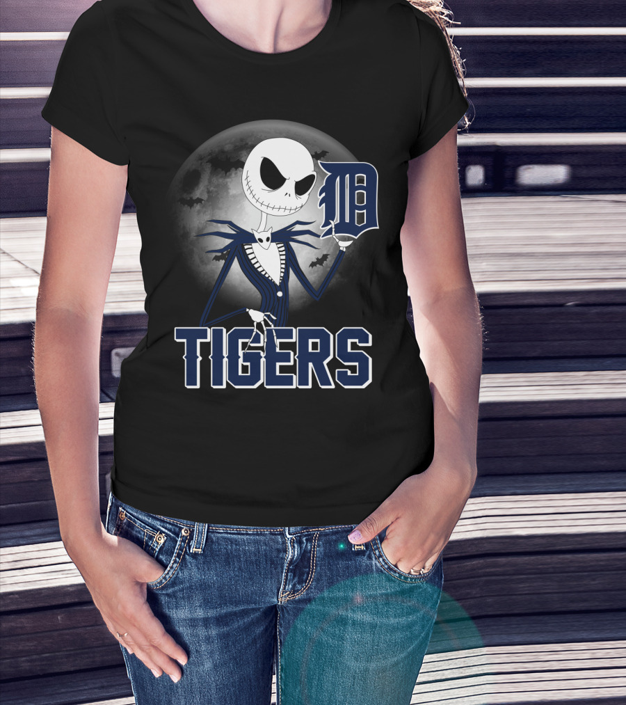 Jack Skellington Detroit Tigers Halloween Moon Scene T-Shirt