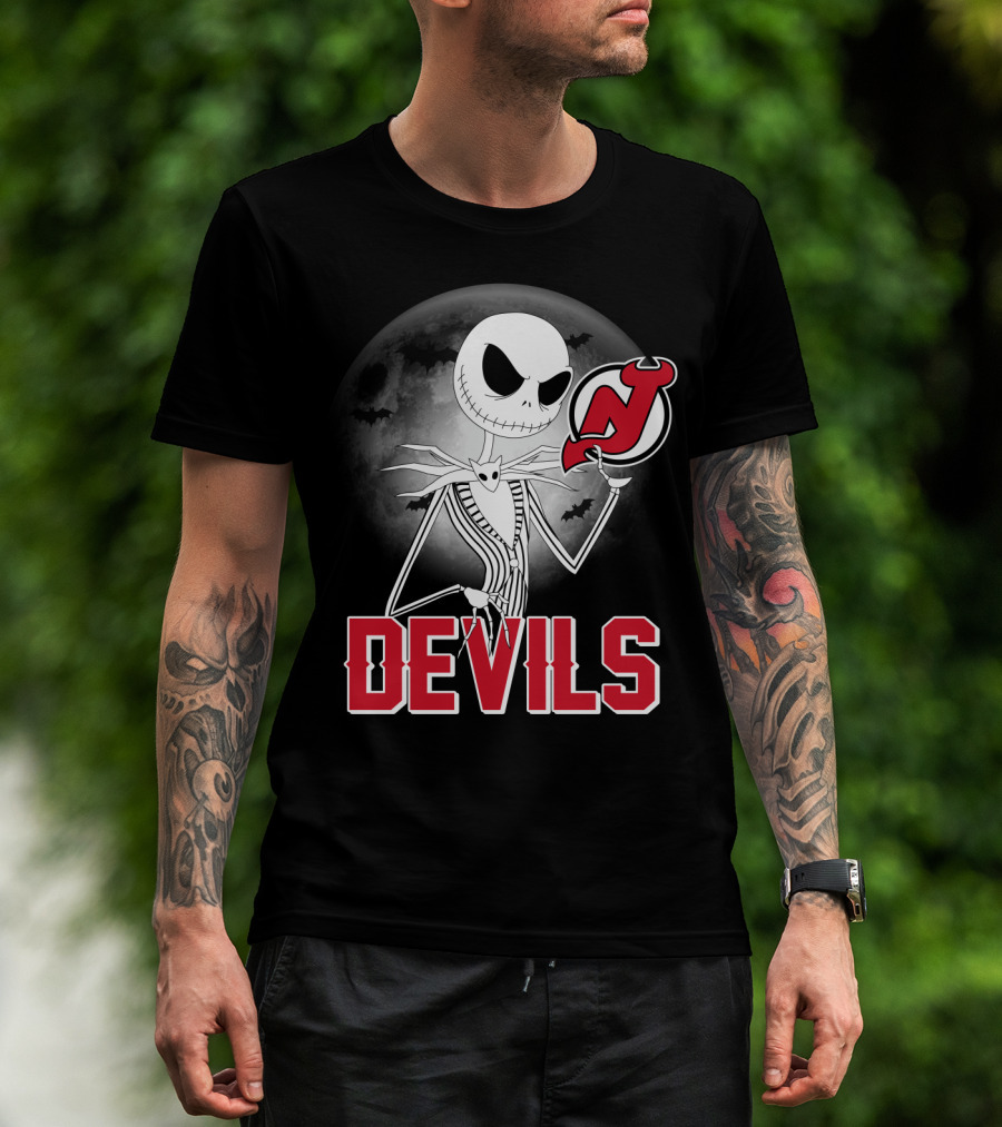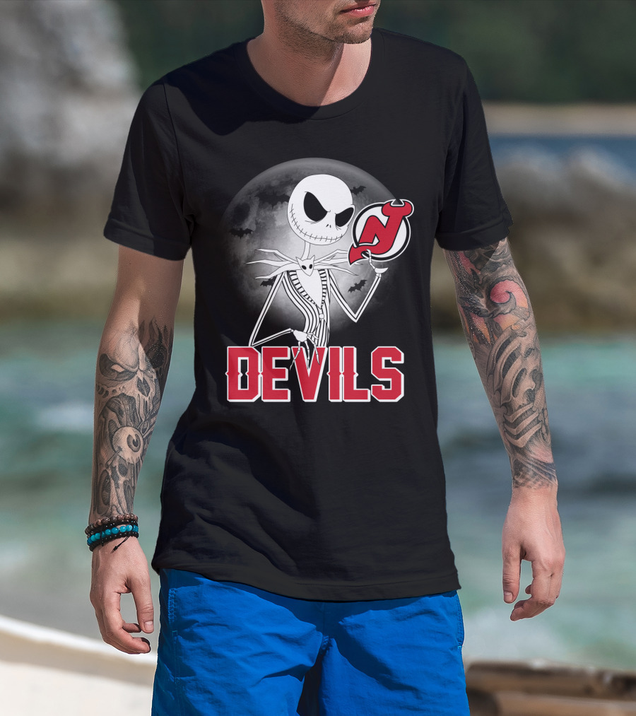 Jack Skellington Halloween Meets New Jersey Devils Moonlit Night T-Shirt