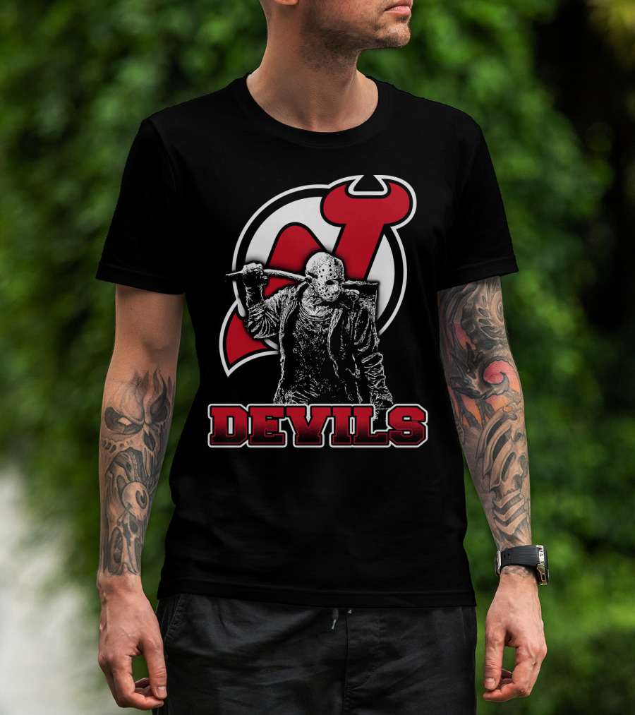 Voorhees New Jersey Devils Fan Mashup With Iconic Mask And Hockey T-Shirt