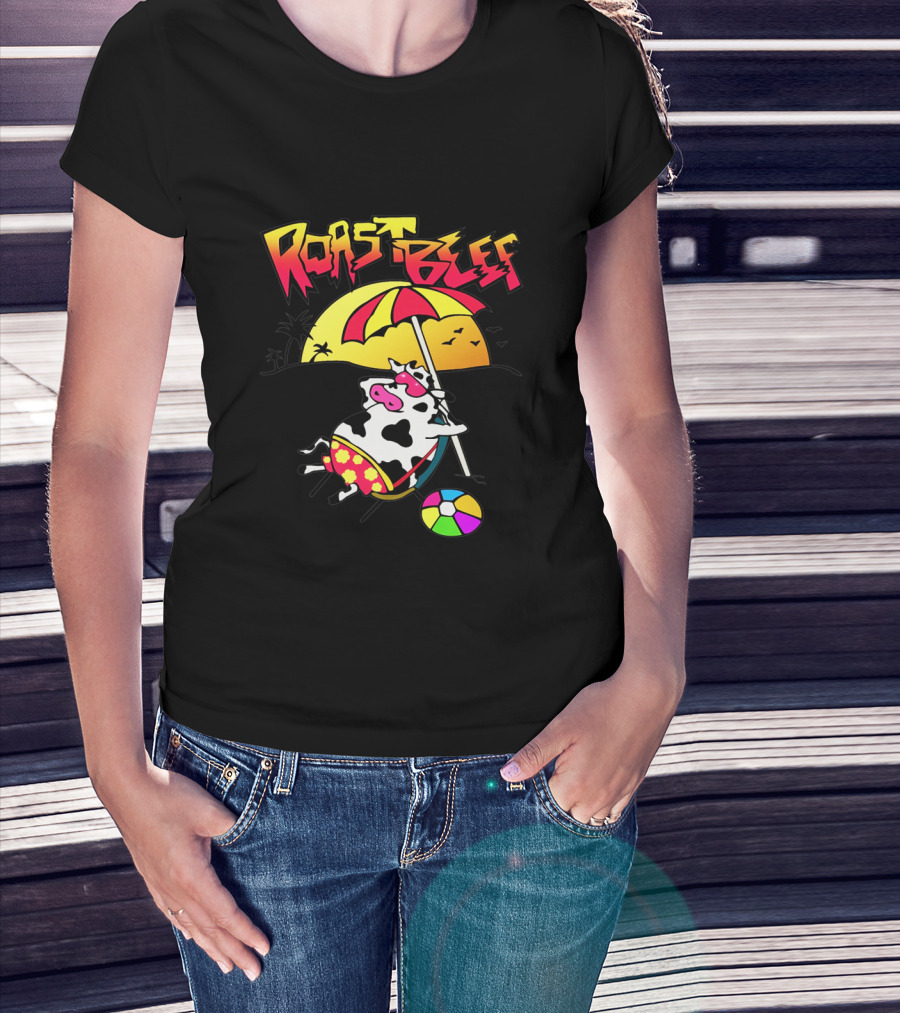 Roast Beef Sunset Cow With Umbrella And Beach Ball Fun T-Shirt