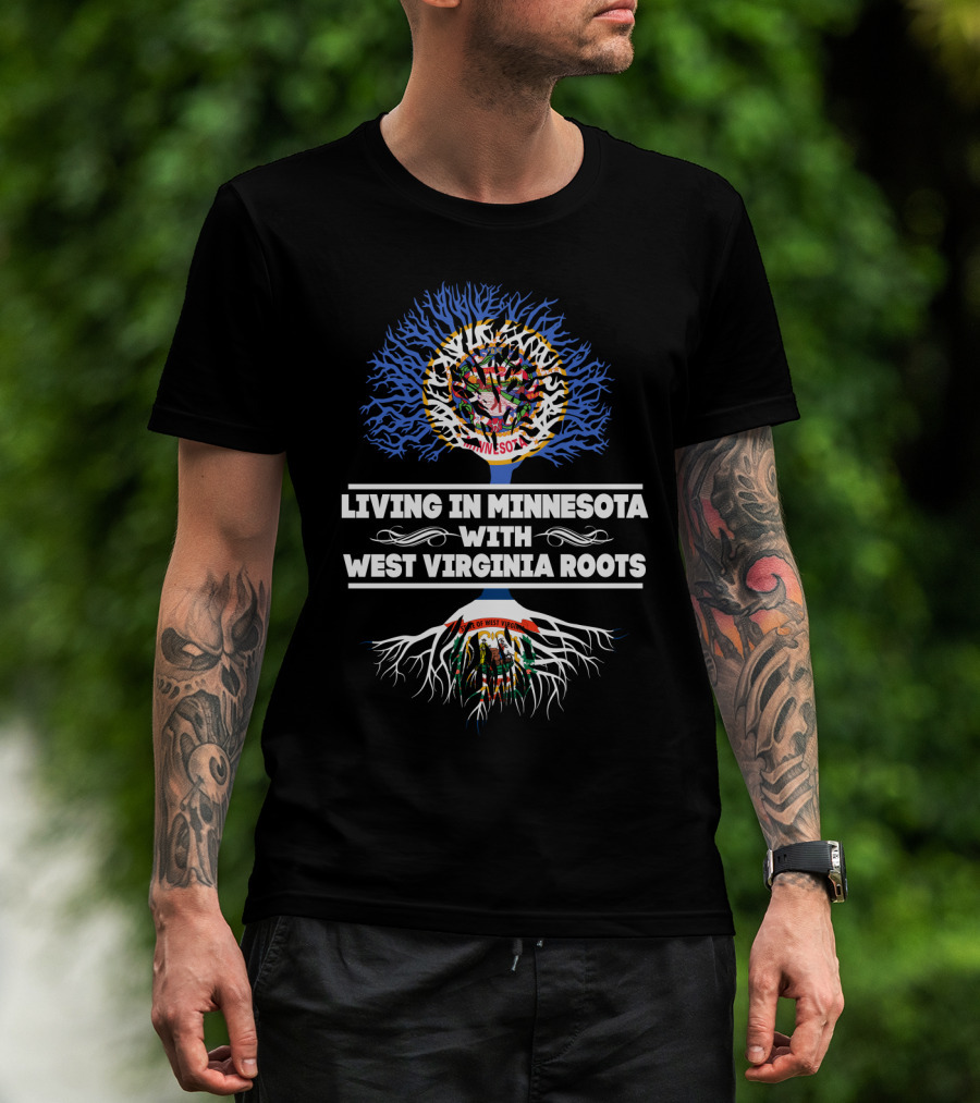 Living In Minnesota With West Virginia Roots State Flags Tree Symbolism T-Shirt