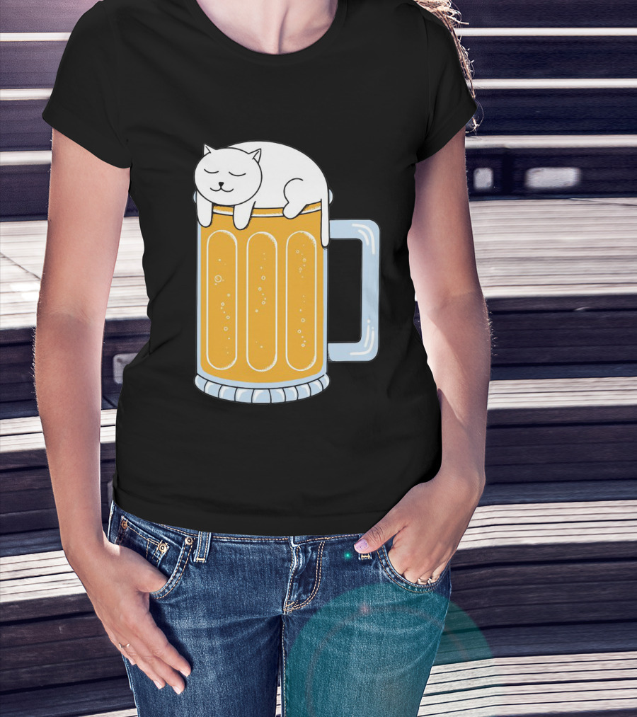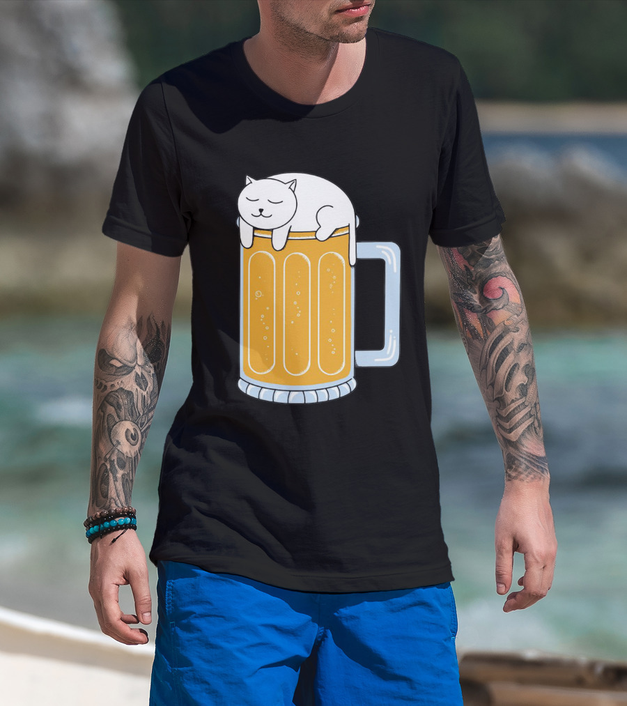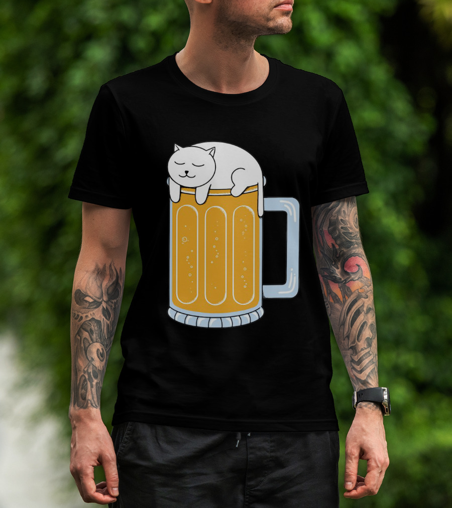 Cat Sleeping On Beer Mug Clipart T-Shirt