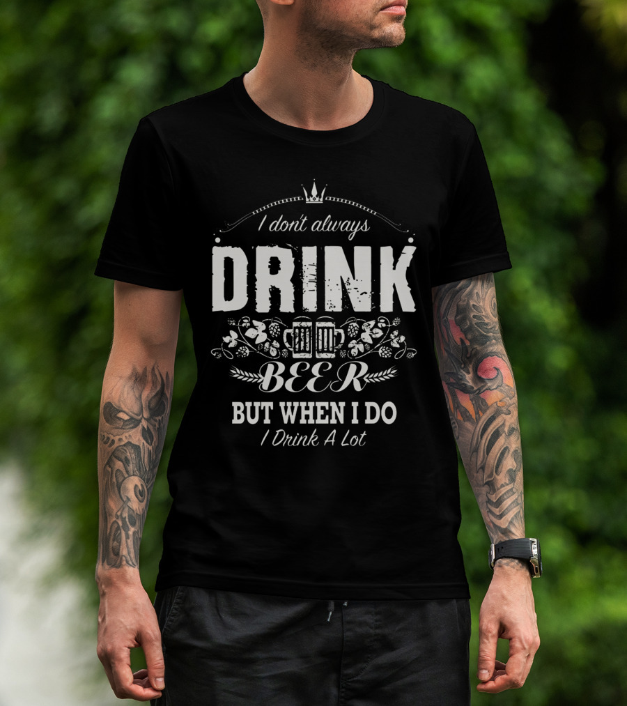 The I Don't Always Drink Beer But When I Do I Drink a Lot – Beer Mug Icon with Decorative Crown and Barley T-shirt is designed for everyday wear and a consistent fit. Fabric is pre-shrunk ring-spun cotton with durable stitching. See the size chart below for exact measurements.