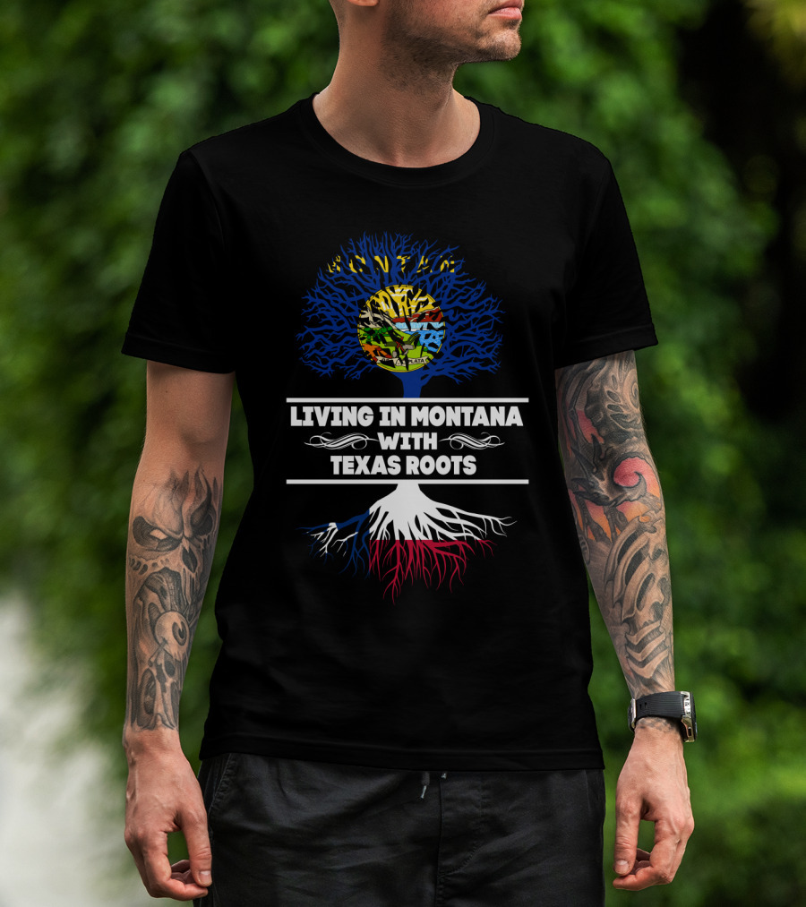 Montana Living With Texas Heritage Tree Design Featuring State Symbols T-Shirt