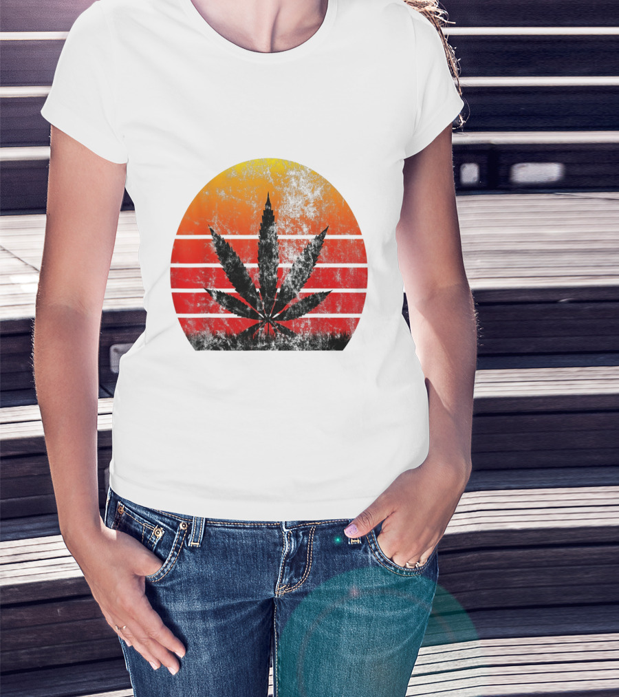 Vintage Sunset Marijuana Weed Leaf T-Shirt