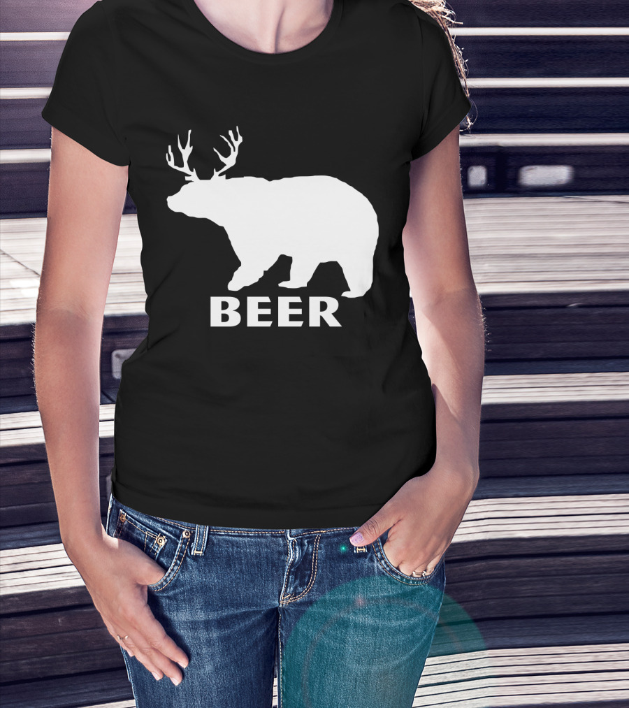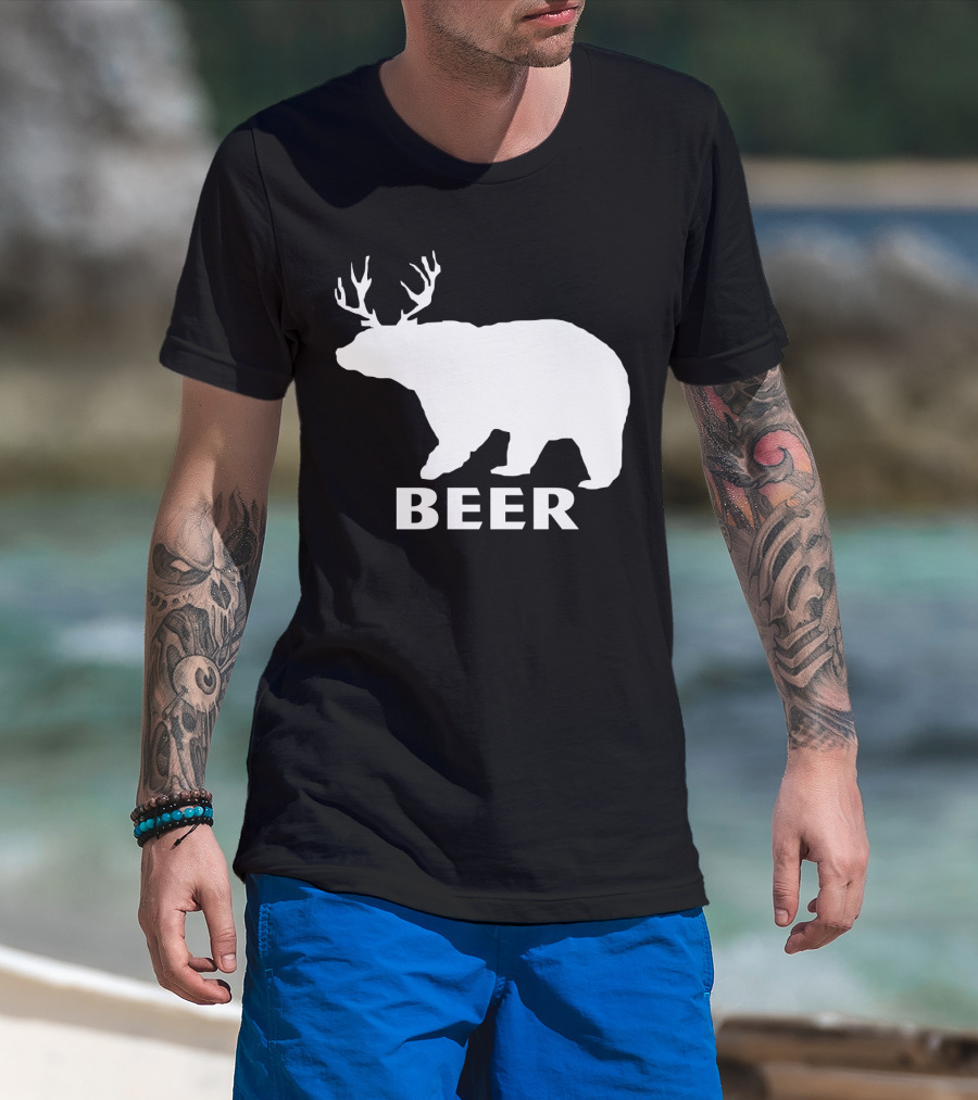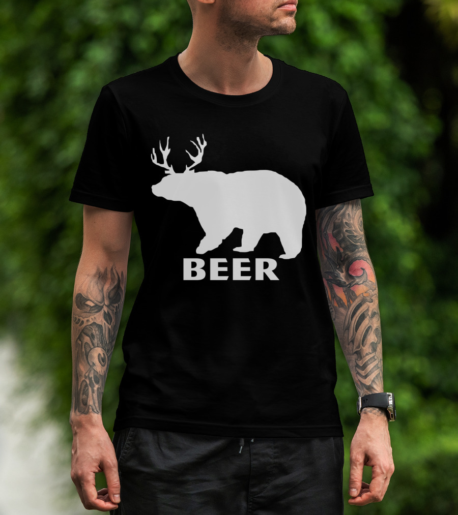 Beer Funny Drinking Bear With Antlers T-Shirt