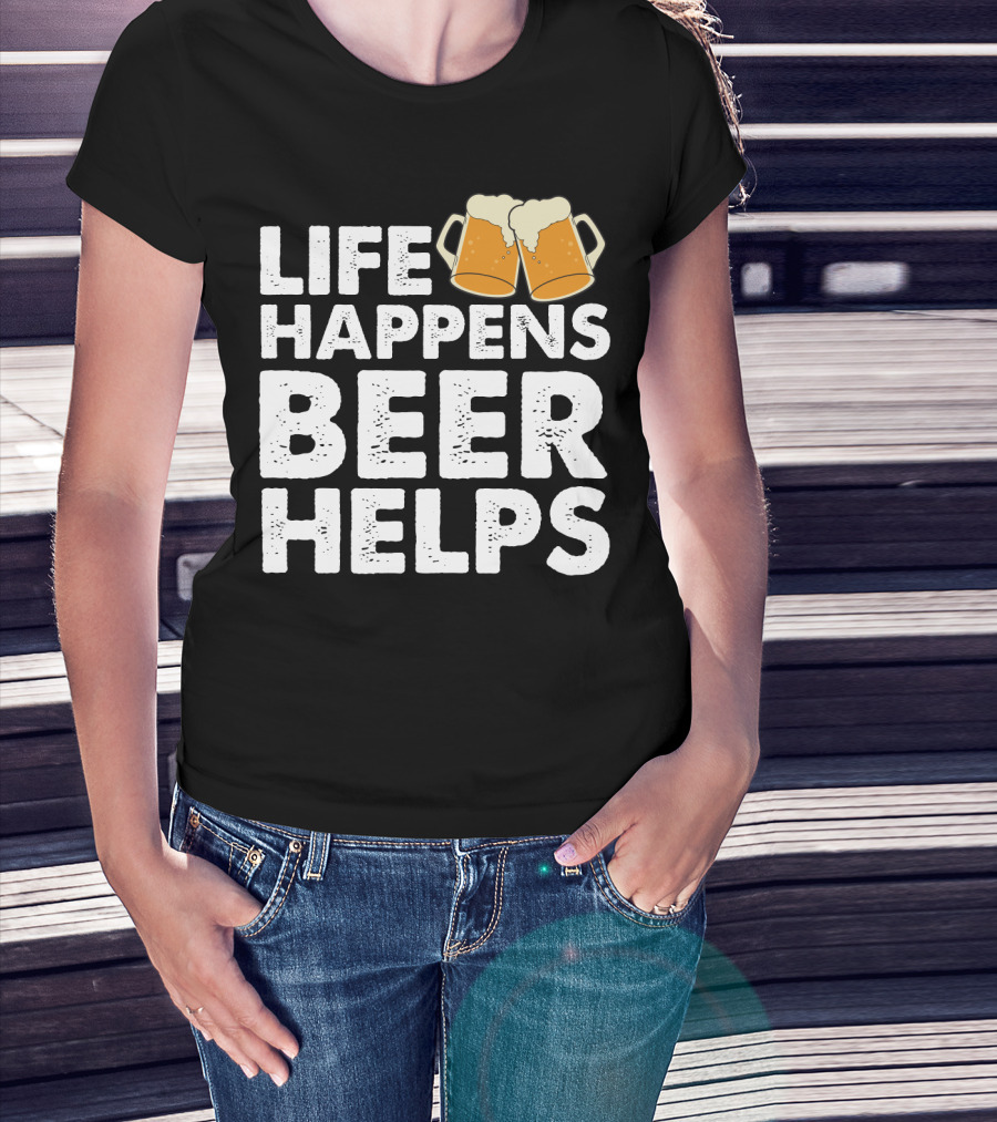Life Happens Beer Helps Clinking Mugs T-Shirt