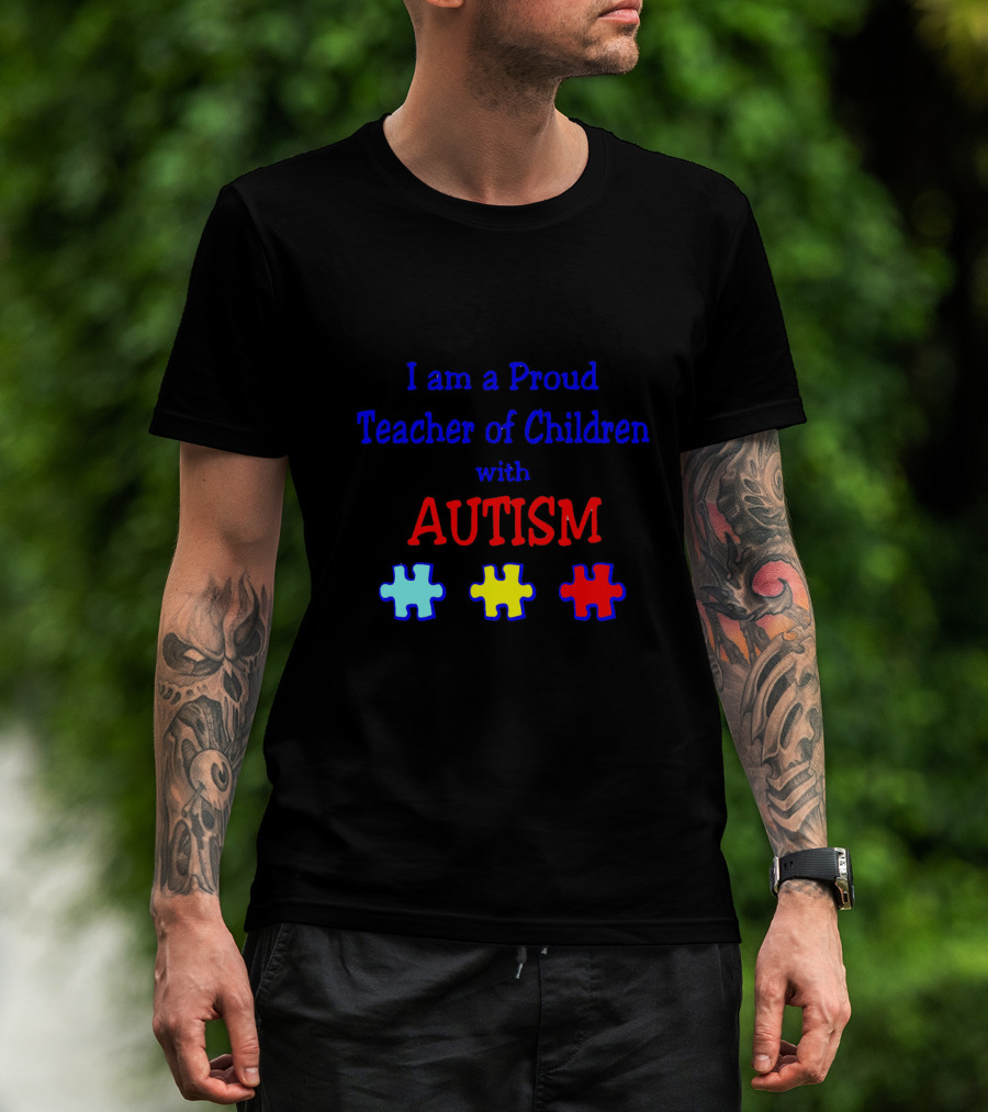 Proud Teacher Of Children With Autism Featuring Autism Puzzle Pieces T-Shirt