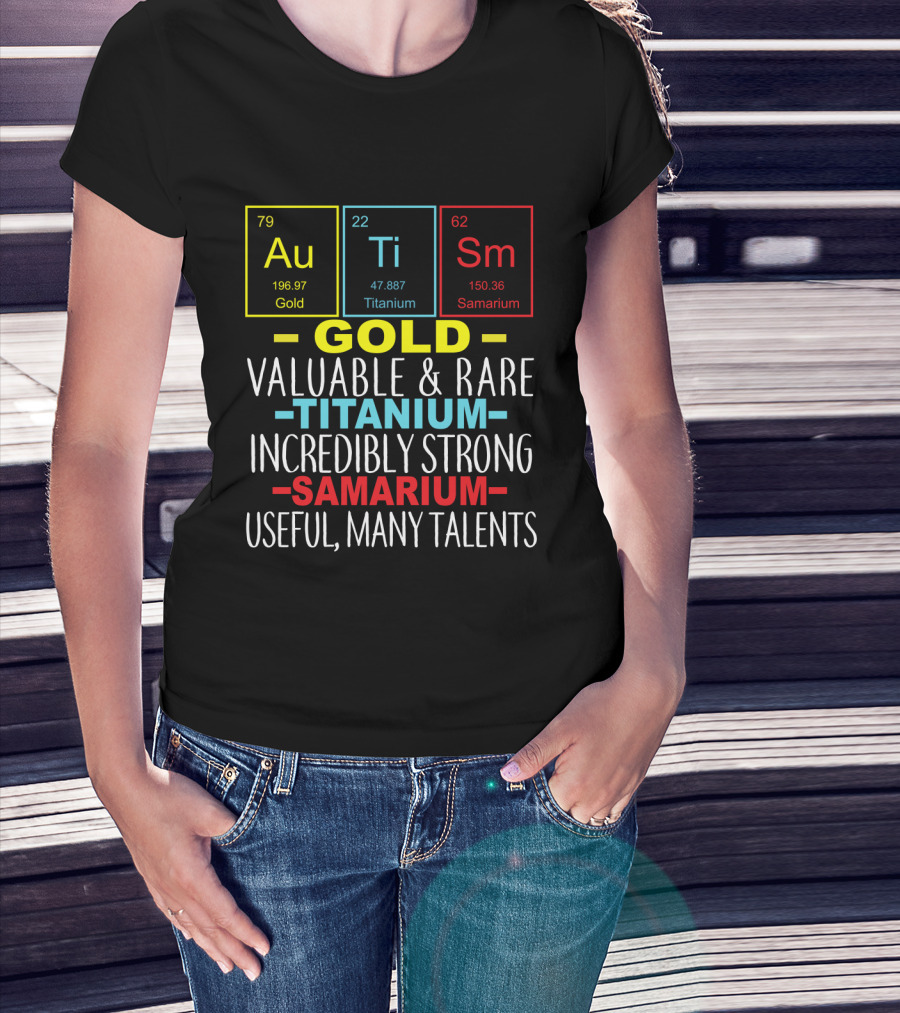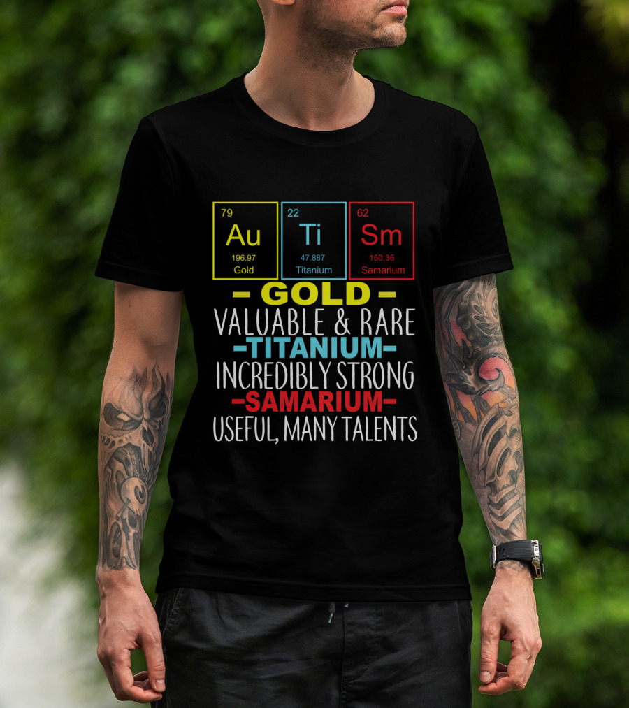 Au Ti Sm Elements Autism Awareness Gold Titanium Samarium Valuable Rare Incredibly Strong Useful Many Talents T-Shirt
