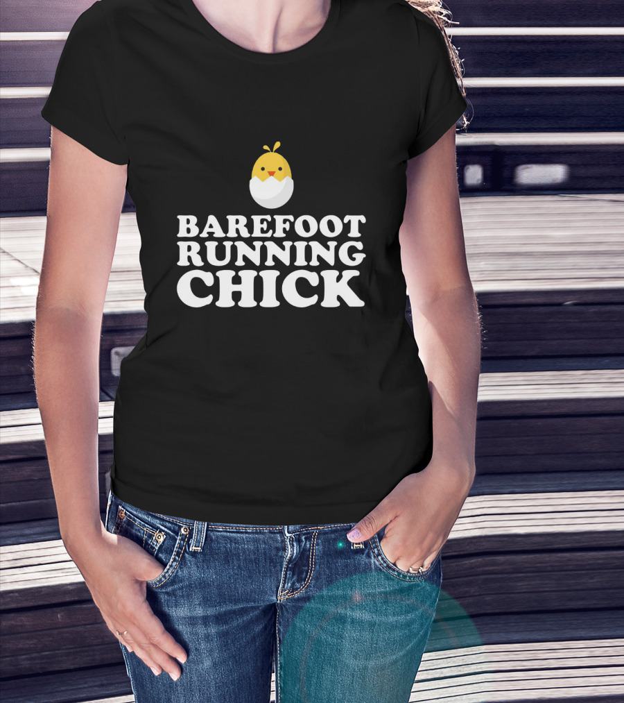 Barefoot Running Chick Egg With Cute Yellow Chicken T-Shirt