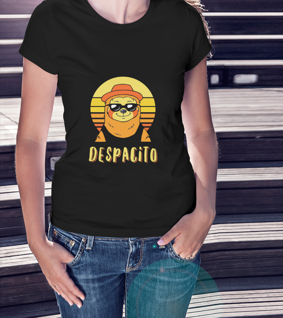 Despacito Sloth Art With Retro Sunset And Stylish Hat T-Shirt