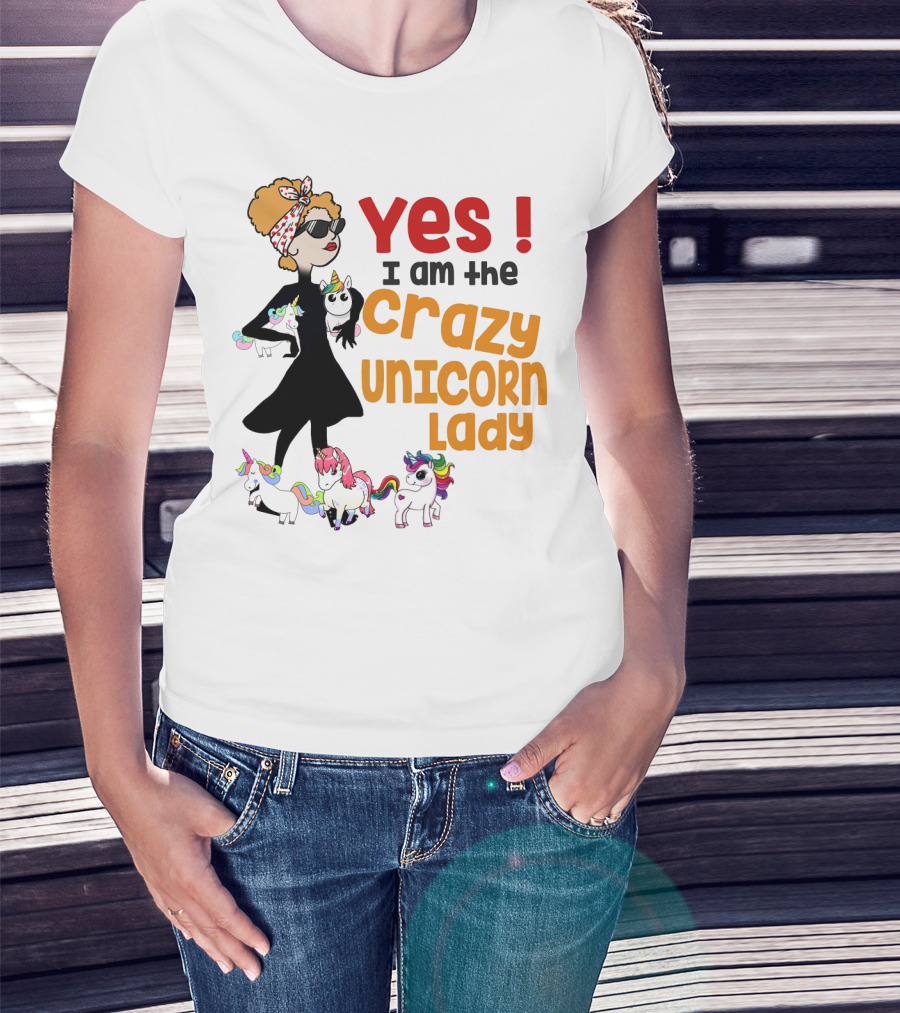 Yes I Am The Crazy Unicorn Lady With Colorful Unicorns And Stylish Cartoon Woman T-Shirt