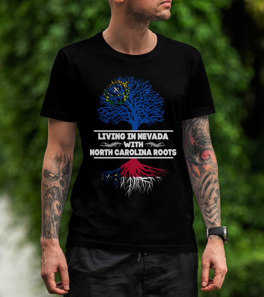Living In Nevada With North Carolina Roots Tree Design Featuring State Colors T-Shirt