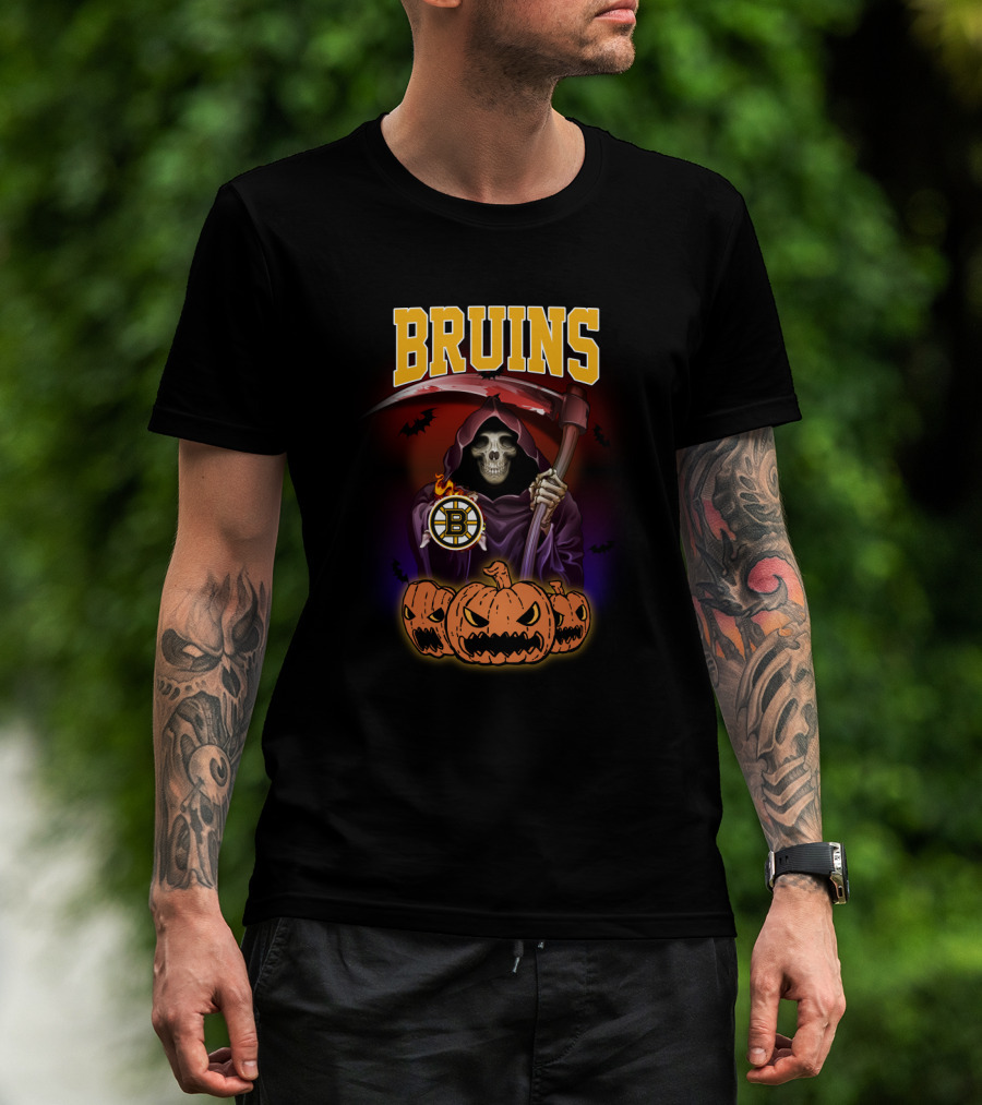 Boston Bruins Grim Reaper Halloween Pumpkins Scythe T-Shirt