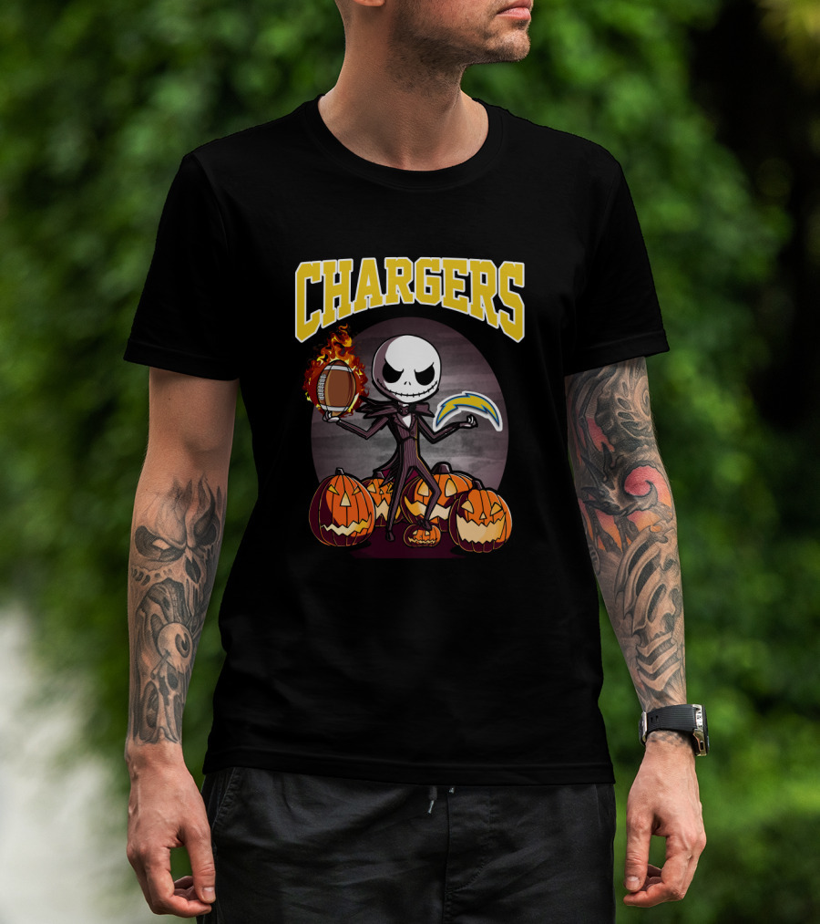 Chargers Halloween Jack Skeleton Football Pumpkins T-Shirt