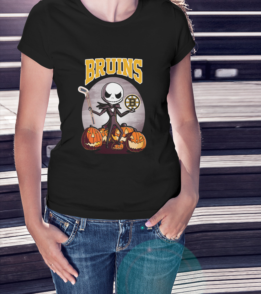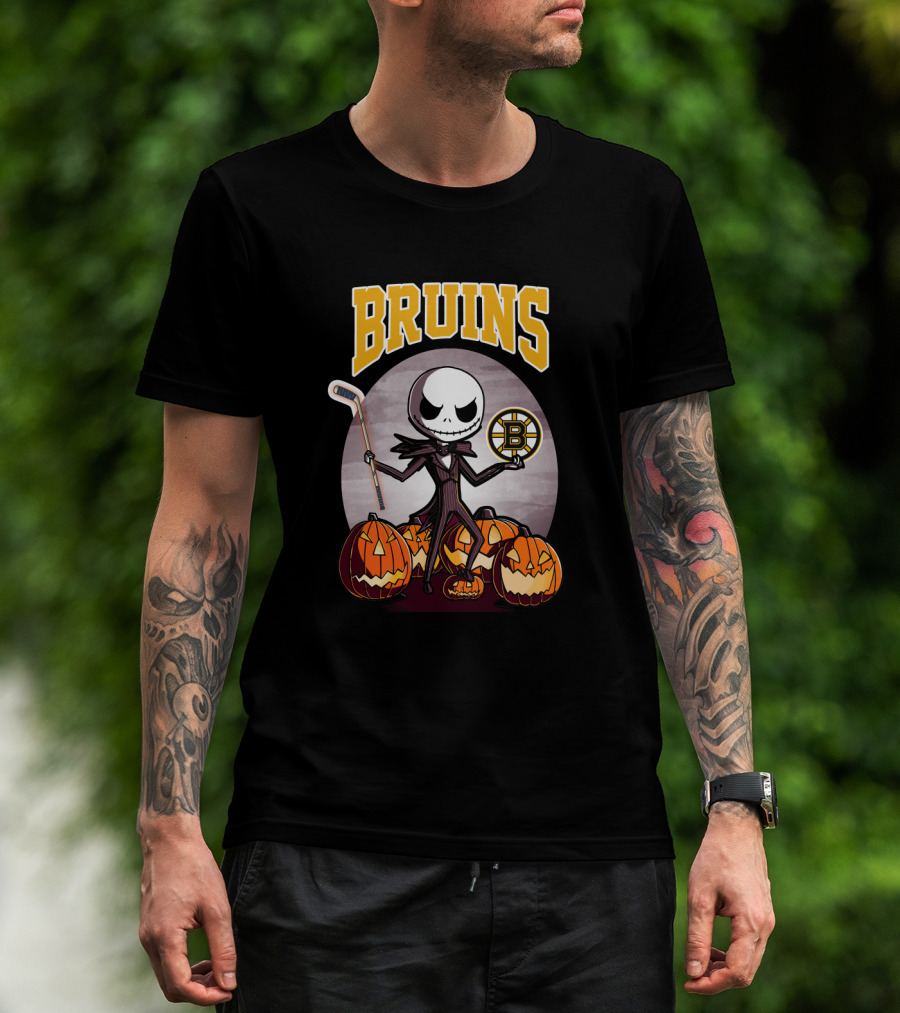 Bruins Jack Skellington Halloween With Boston Hockey Pumpkins T-Shirt