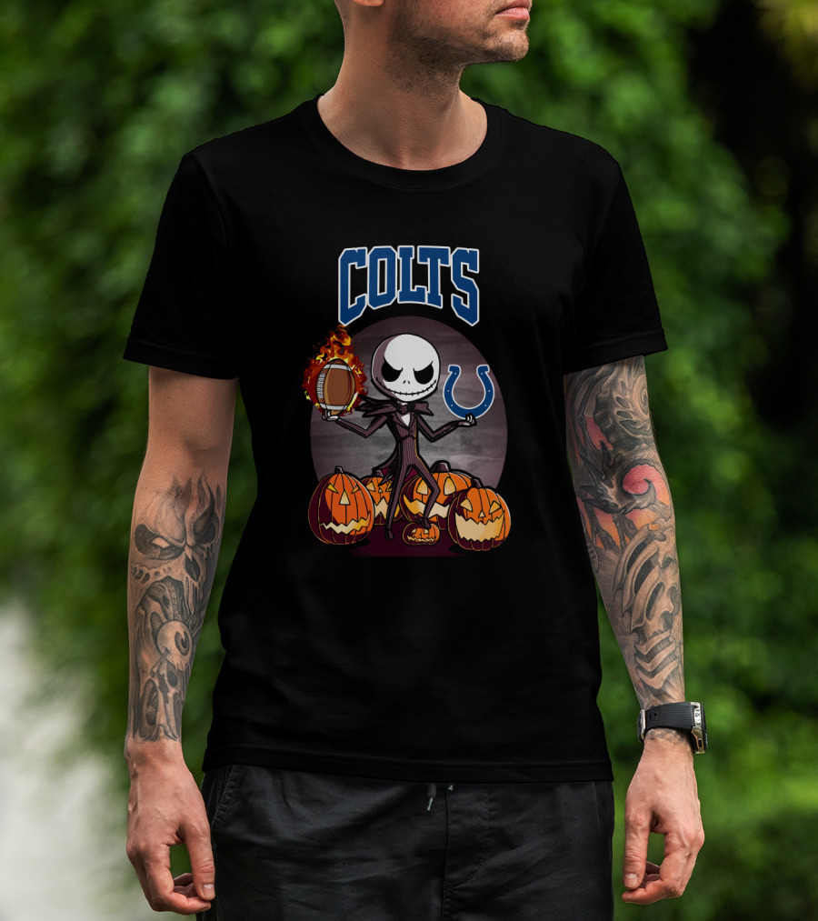 Colts Jack Skellington Halloween Football Pumpkins Horseshoe T-Shirt