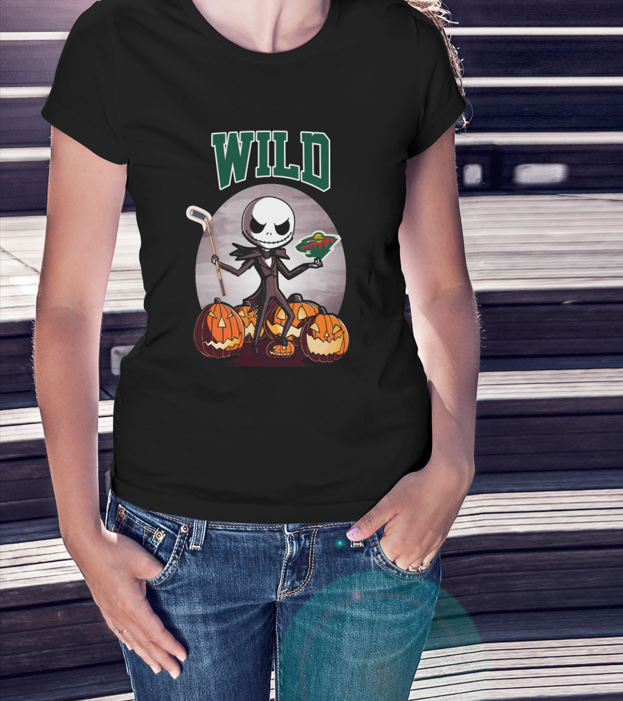 Jack Skellington Halloween Minnesota Wild Hockey Pumpkins T-Shirt
