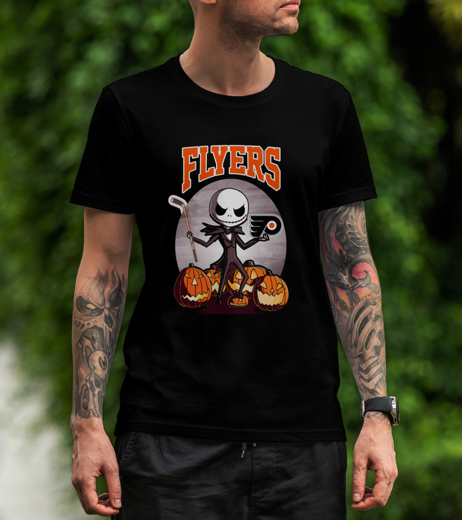 Philadelphia Flyers Jack Skellington Halloween Hockey Pumpkins T-Shirt
