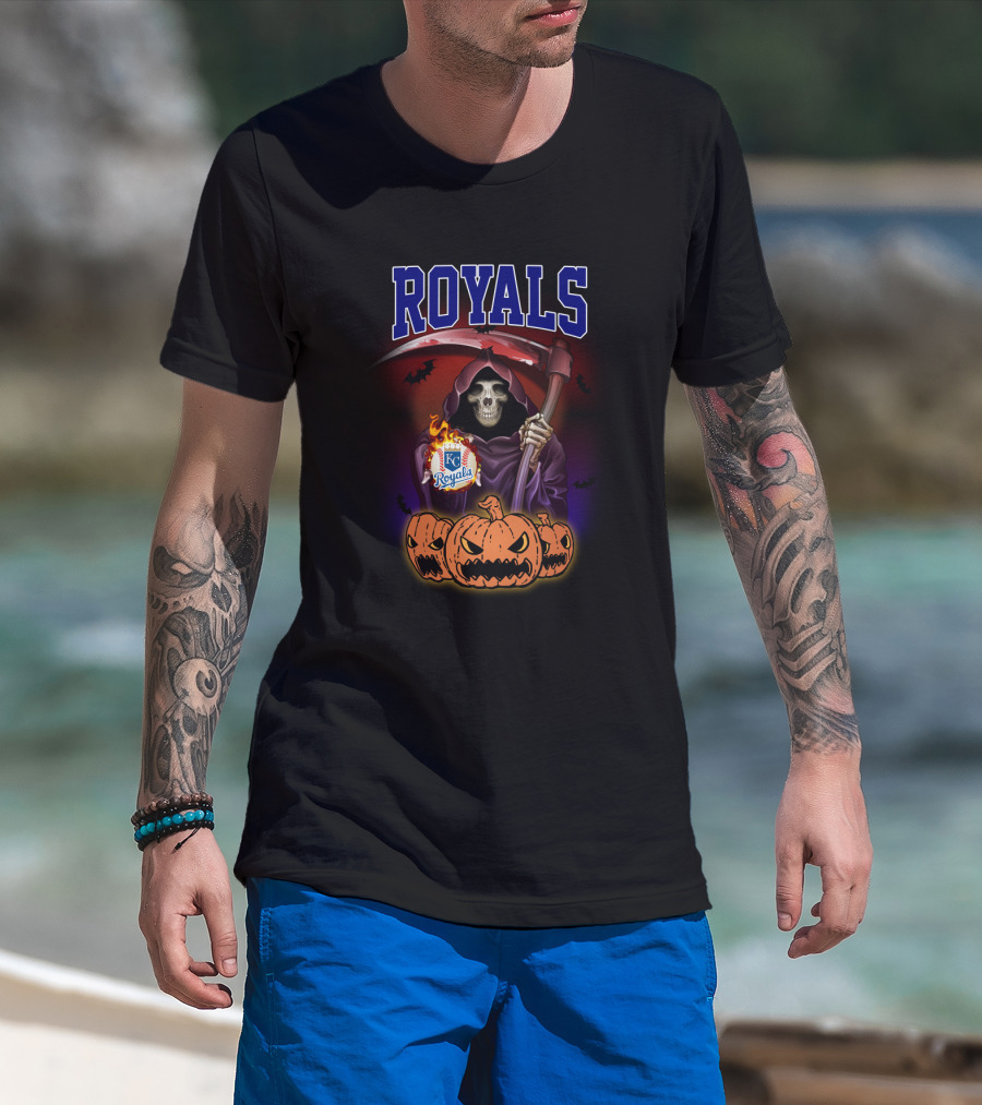 Kansas City Royals Halloween Reaper With Scythe And Pumpkins T-Shirt