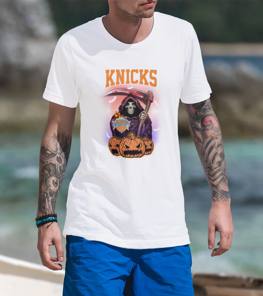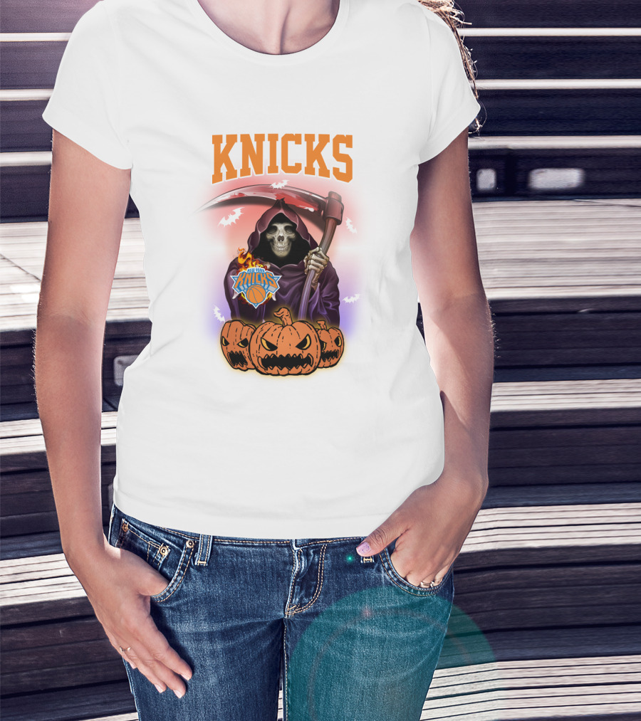 Knicks Grim Reaper Halloween Pumpkins New York Basketball T-Shirt