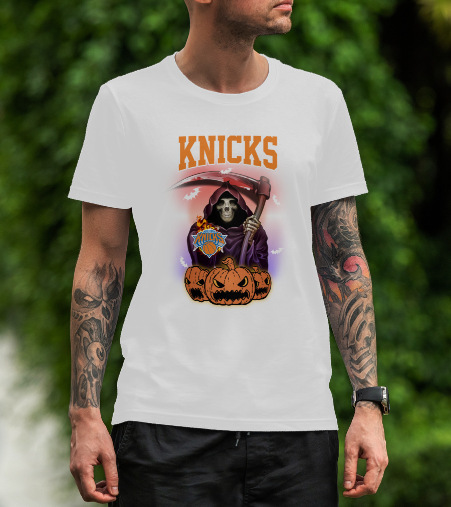 How much will this Knicks Grim Reaper Halloween Pumpkins New York Basketball shirt shrink?