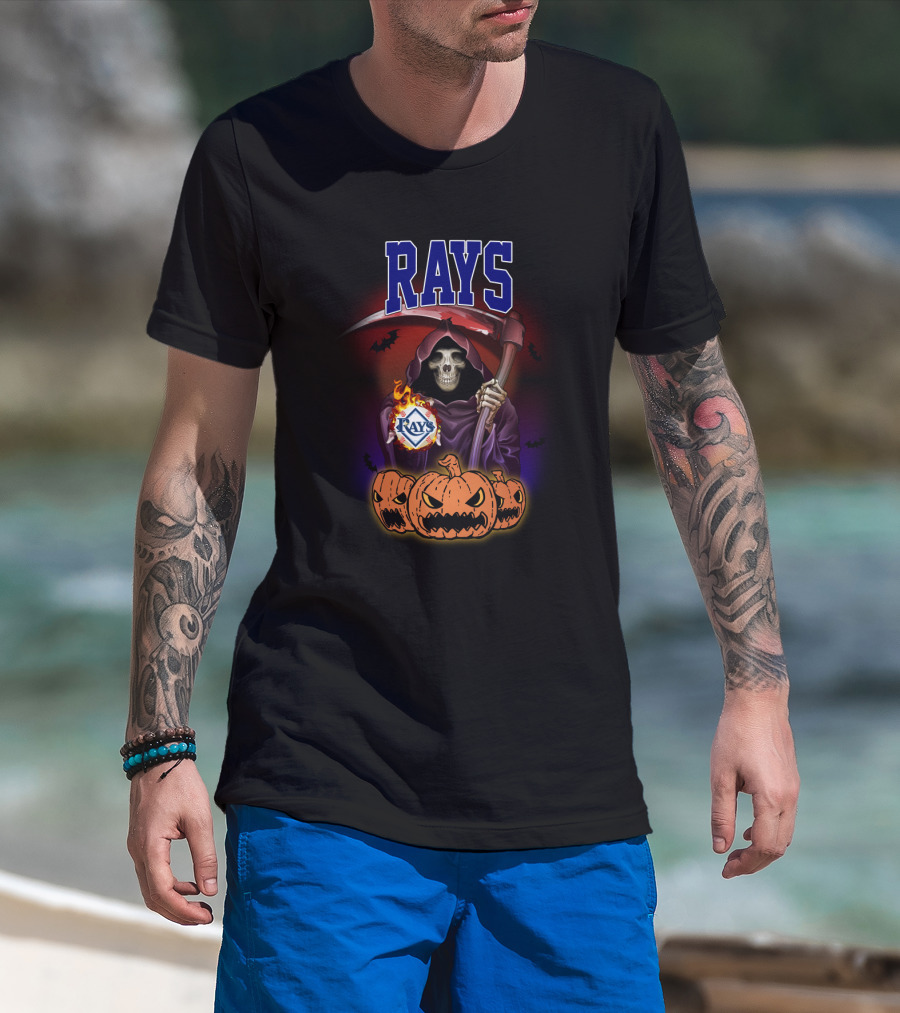 Tampa Bay Rays Reaper Holding Scythe With Pumpkins And Bats T-Shirt