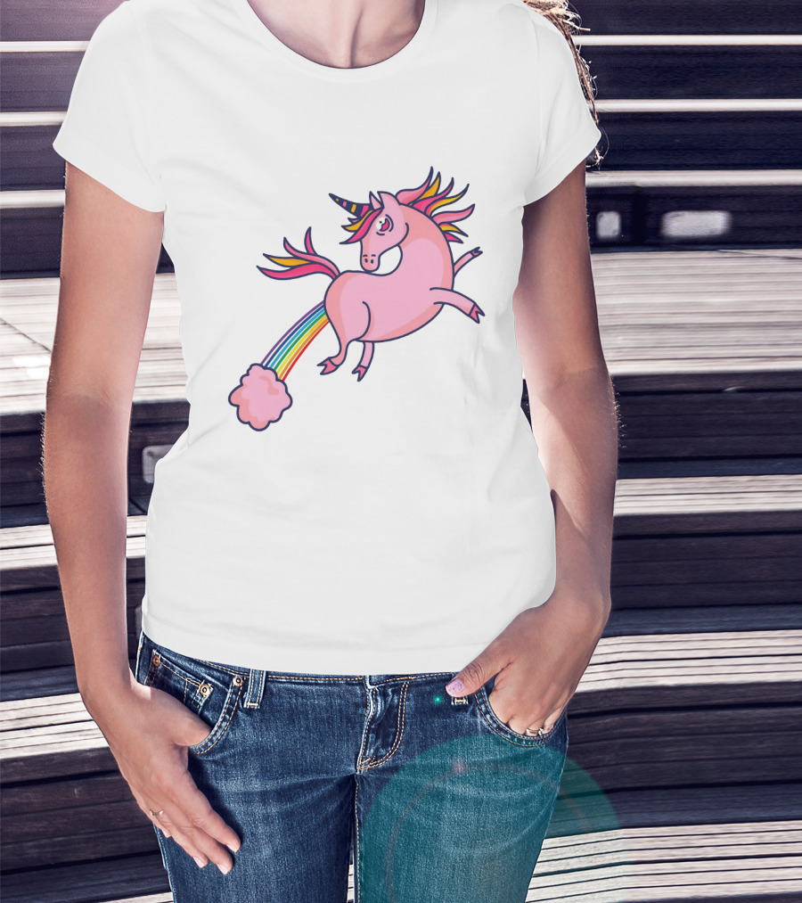The Magical Unicorn with Rainbow Tail and Puffy Clouds T-shirt is designed for everyday wear and a consistent fit. Fabric is pre-shrunk ring-spun cotton with durable stitching. See the size chart below for exact measurements.