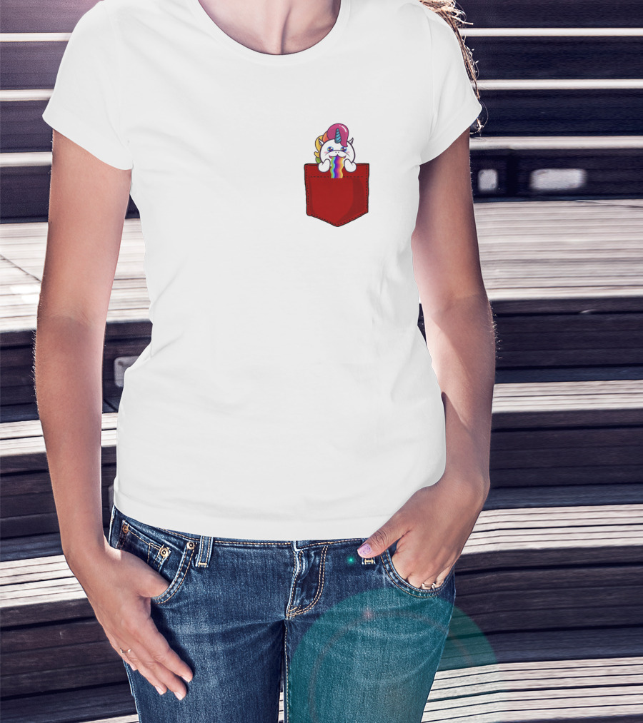 Crying Rainbow Unicorn In Red Pocket T-Shirt