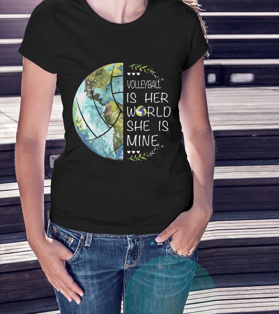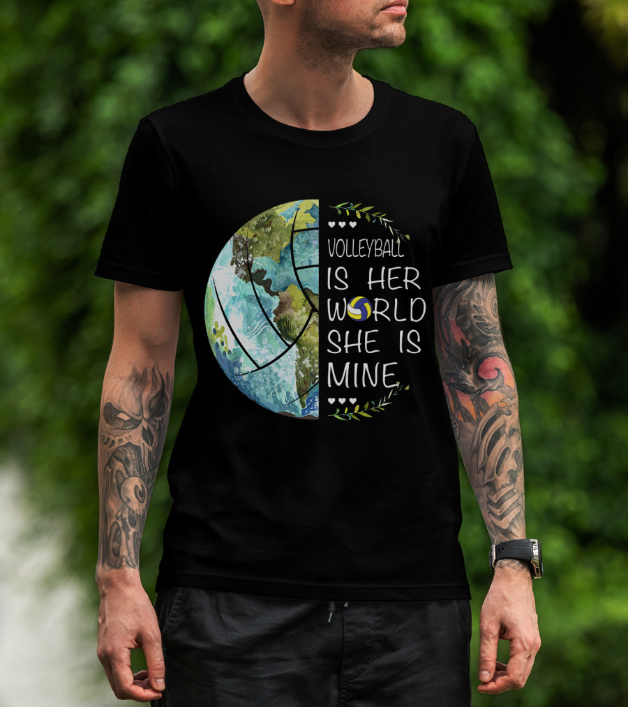 Volleyball Is Her World She Is Mine Earth Globe Volleyball Heart T-Shirt