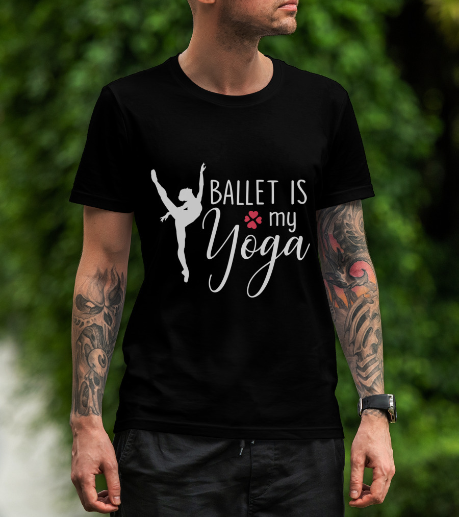Ballet Is My Yoga Dancer Silhouette And Heart Paw Prints T-Shirt