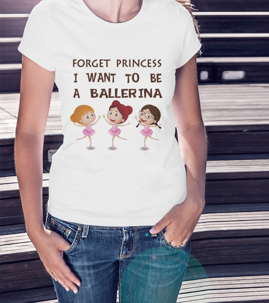 Forget Princess I Want To Be A Ballerina Ballet Dance With Three Cartoon Girls In Pink Tutus T-Shirt