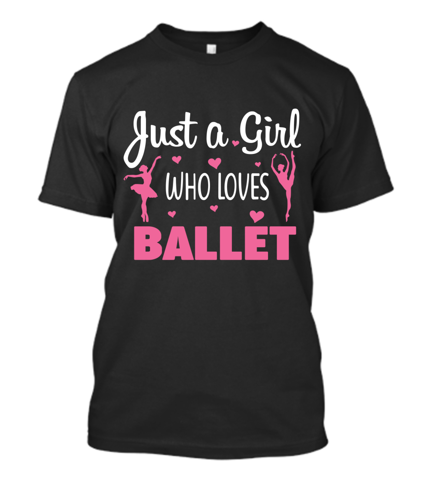 The Just a Girl Who Loves Ballet with Pink Dancer Silhouettes and Hearts T-shirt is designed for everyday wear and a consistent fit. Fabric is pre-shrunk ring-spun cotton with durable stitching. See the size chart below for exact measurements.
