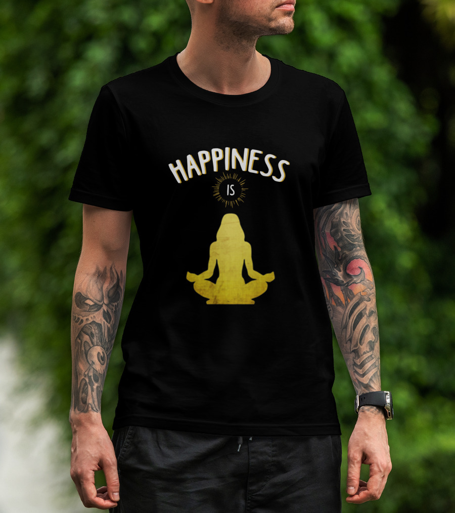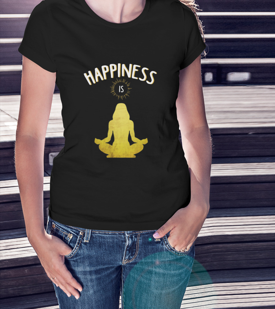 Happiness Is Yoga Meditation Silhouette In Yellow With Sunburst T-Shirt
