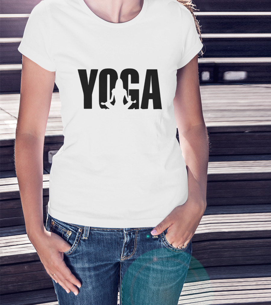 Yoga Silhouette Sitting Pose In Stylized Text T-Shirt
