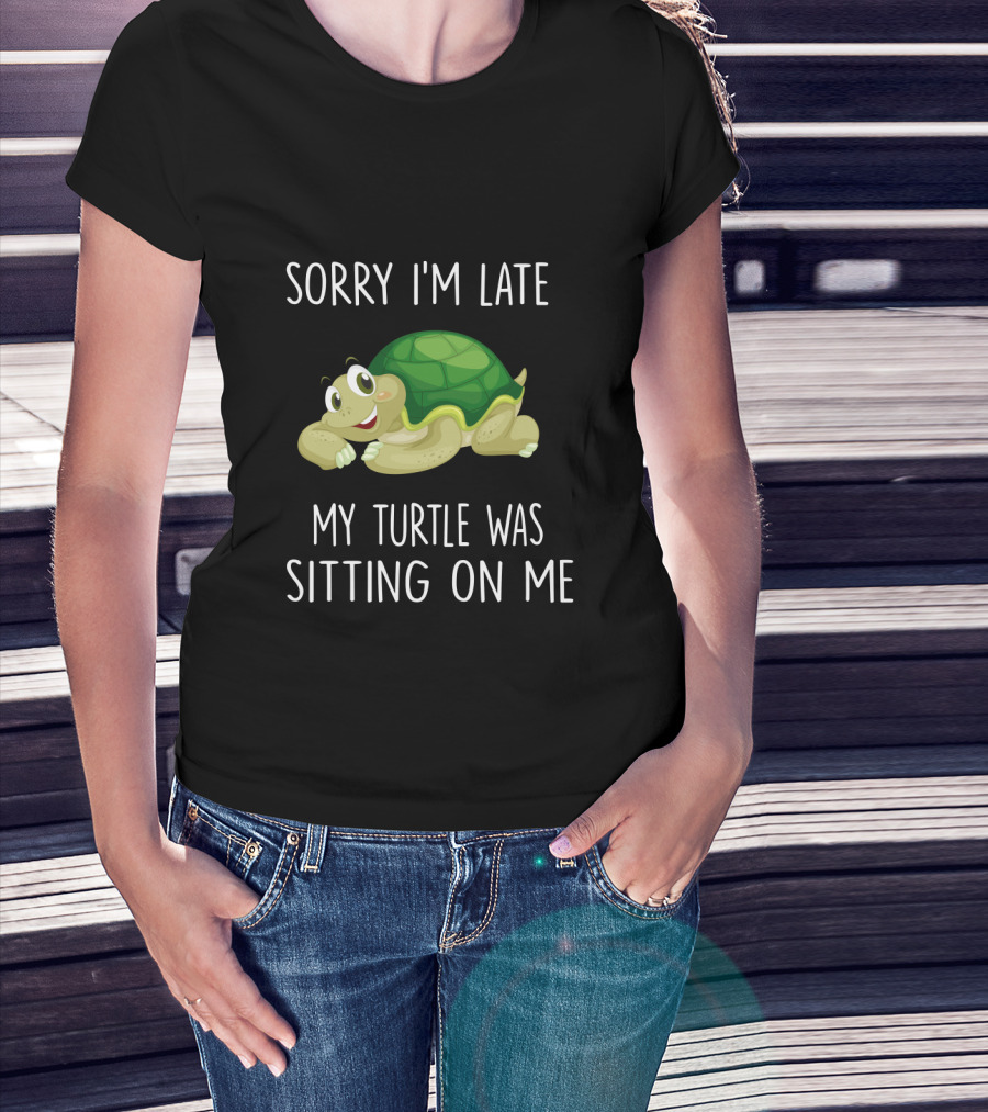 Sorry I'm Late My Turtle Was Sitting On Me Cute Cartoon Turtle T-Shirt