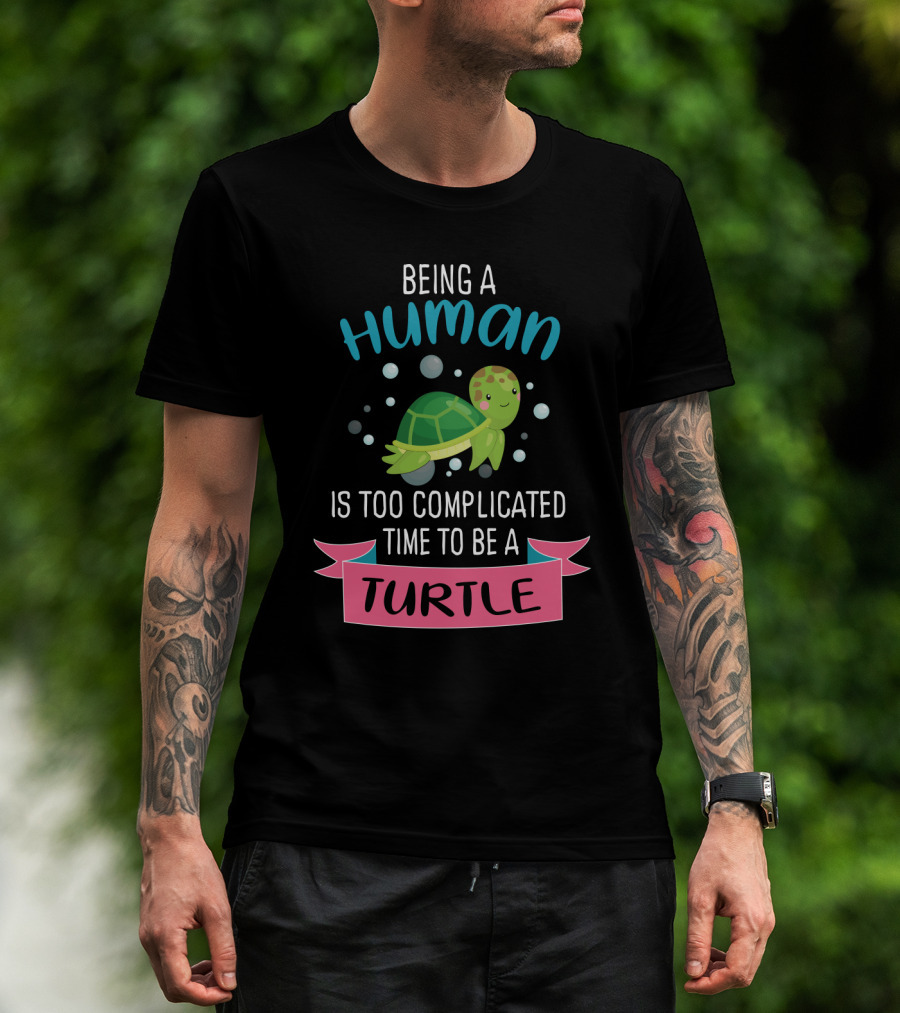 Being A Human Is Too Complicated Time To Be A Turtle Funny Quote With Cartoon Turtle T-Shirt