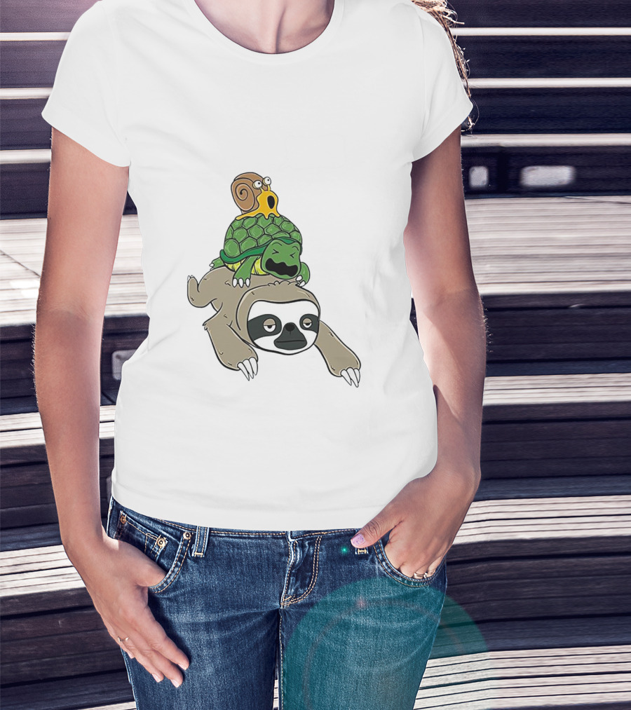 Sloth And Turtle Snail Stack Ride Adventure T-Shirt