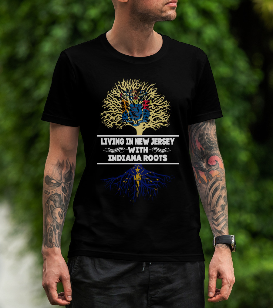 Living In New Jersey With Indiana Roots Featuring State Flag Tree Roots T-Shirt